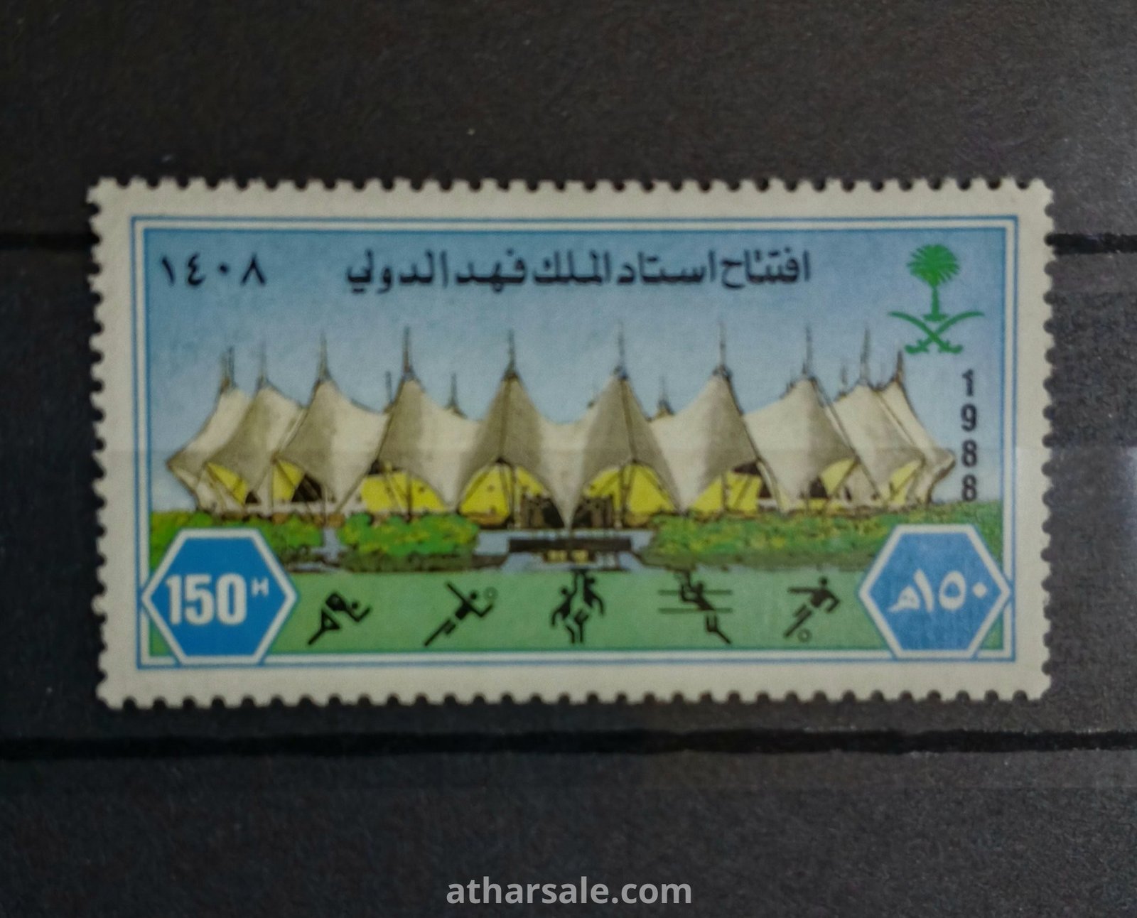 طابع اصلى للذكرى الأولى افتتاح استاد الملك فهد الدولي بالعاصمة الرياض