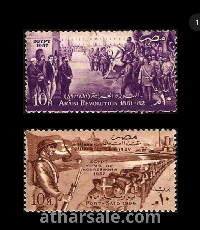 طابع اصلى لذكرى الثورة العرابية وطابع اصلى لذكرى جلاء الاحتلال البريطاني عن مصر