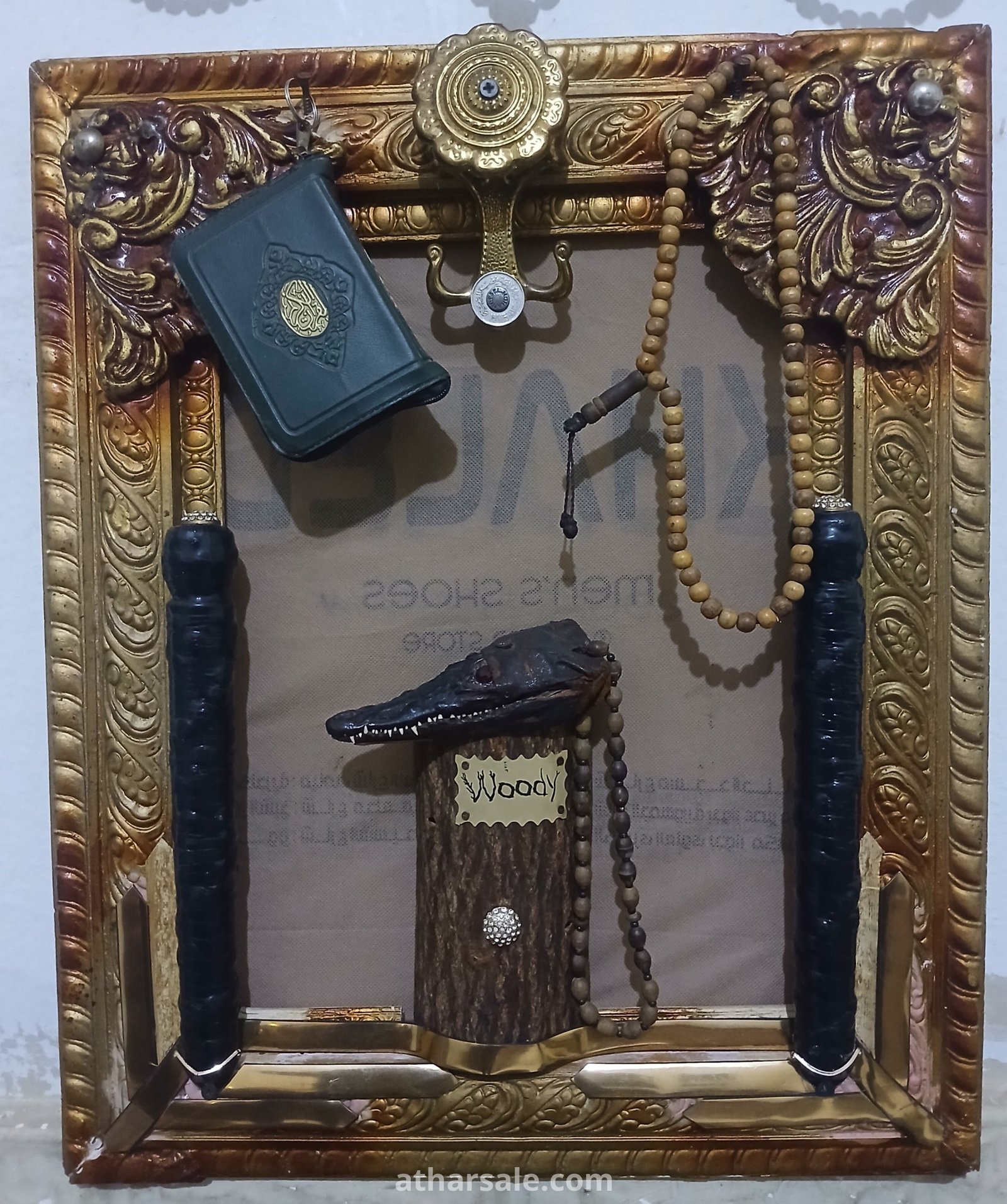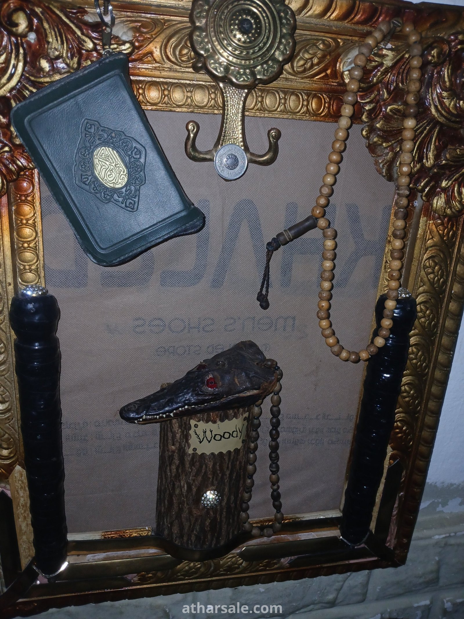 برواز خشب به رأس تمساح محنط عمر 90 عام و مقتنيات اخرى قديمه.