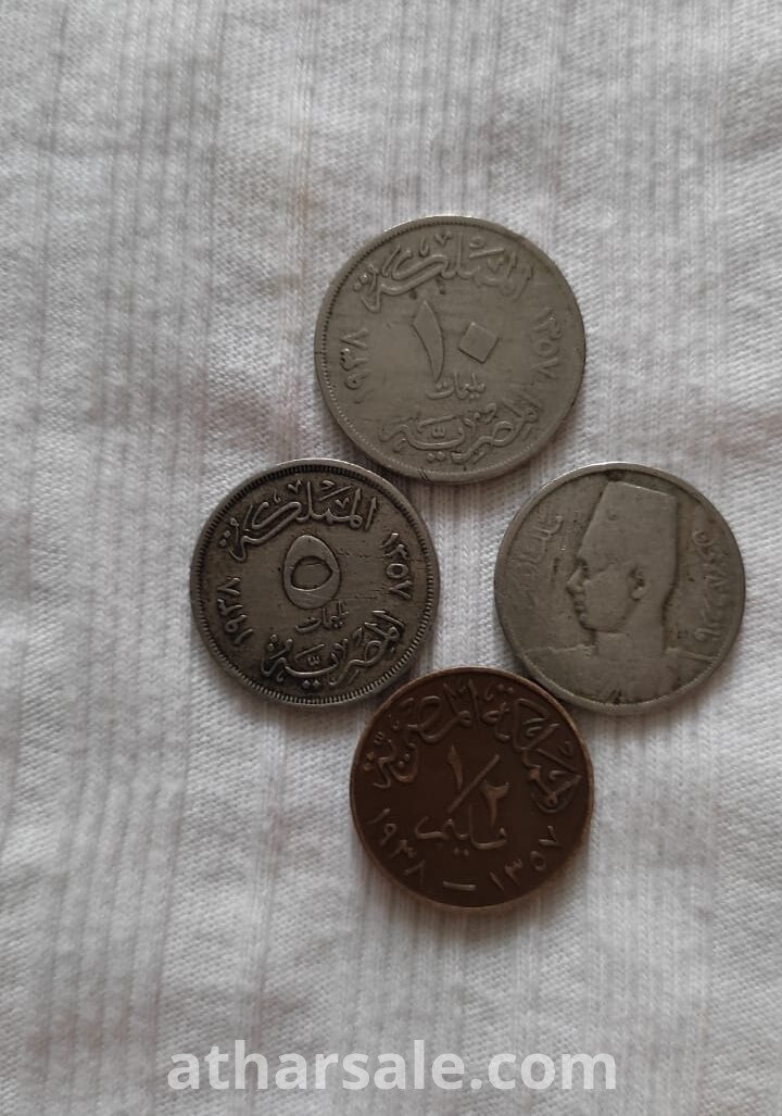 عملات ملكية فضيه نادره للملك فاروق اصدار لسنة الاصدار 1938