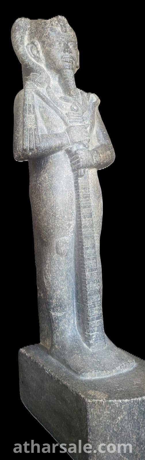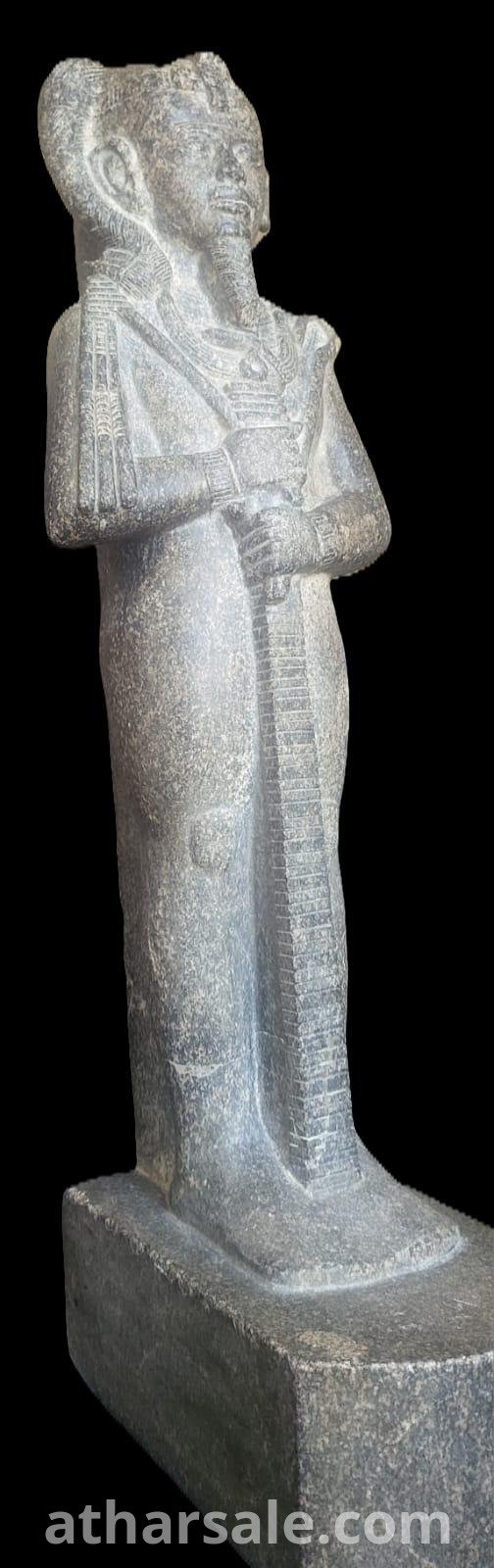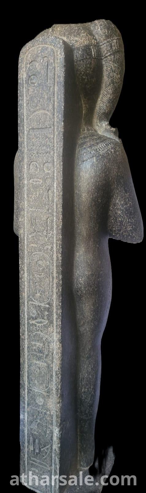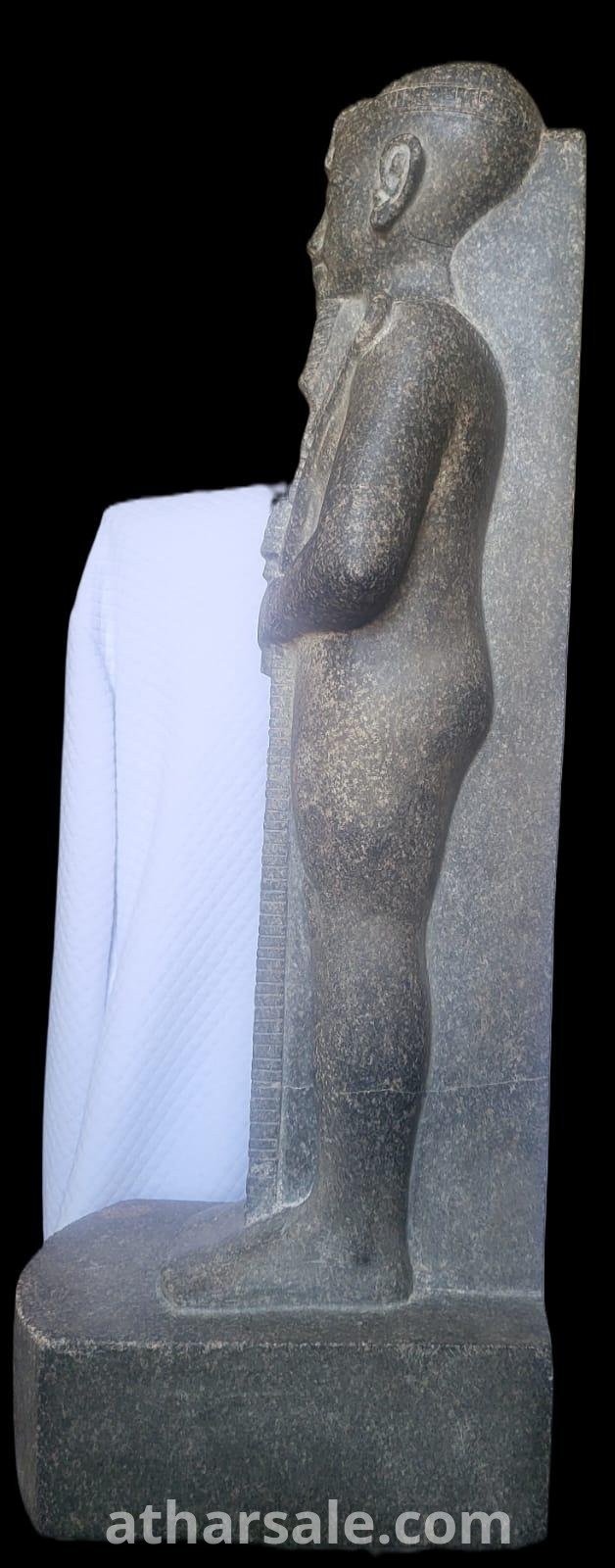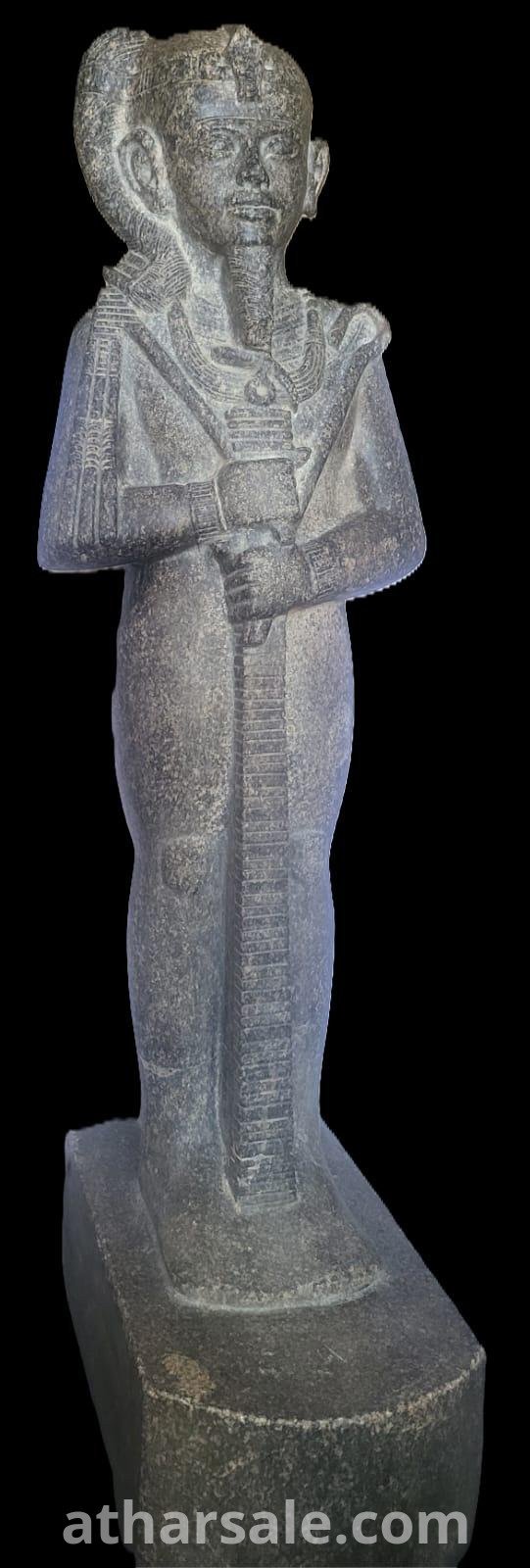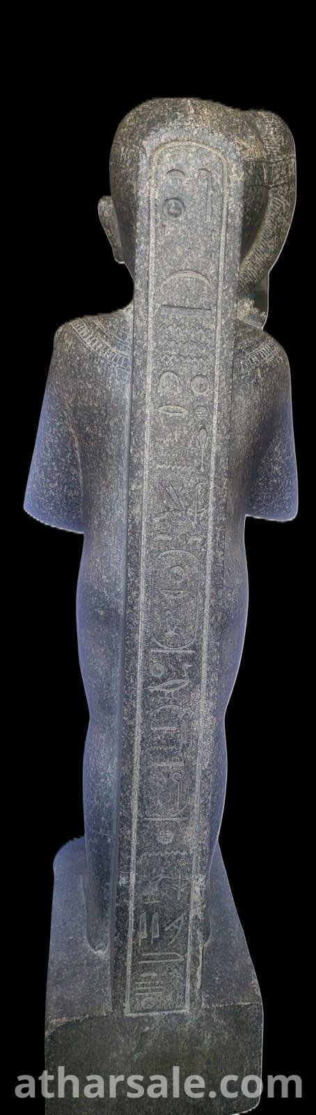 نسخة عالية الجودة ترتقى للاصلى صنعت من حجر الديوريت الرمادى الصلب مع نقوش فرعونية ترمز للملك امنحتب الثالث فى جسد الاله خنسو اله القمر عند قدماء المصريين وهوتمثال للقصور الفاخرة فقط