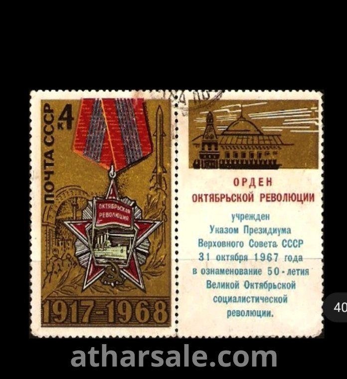 طابع اصلى مع البطاقة للثورة البلشيفية الروسية