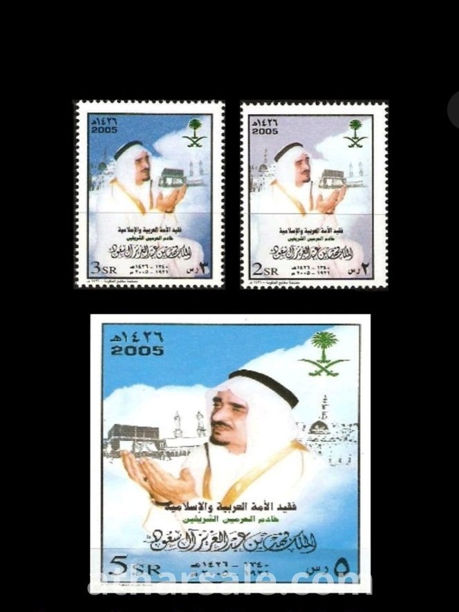 الطابع والبطاقة الأصلية لفقيد الملك فهد بن عبدالعزيز آل سعود ملك المملكة العربية السعودية