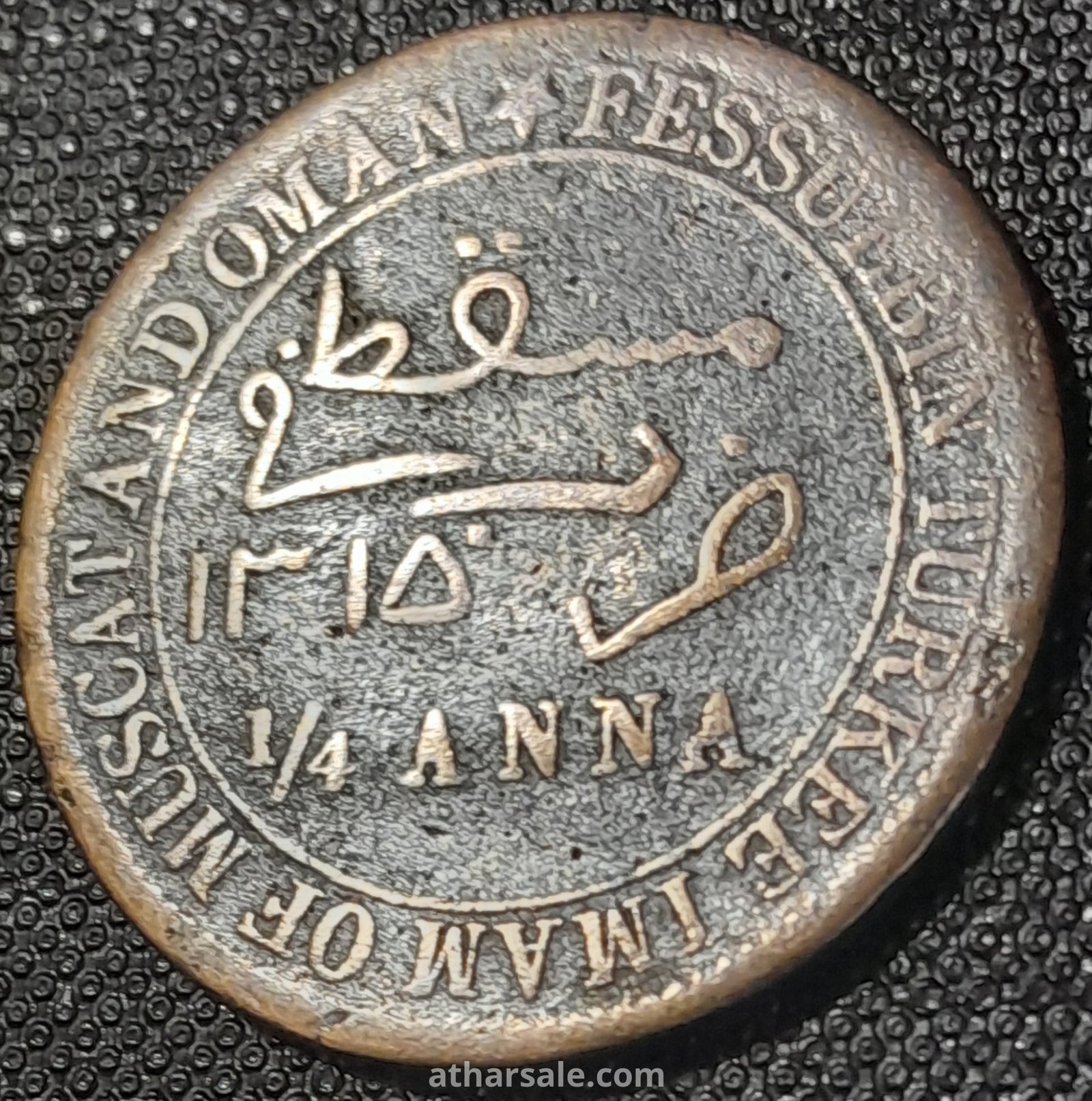 عملة معدنية نحاسية نادرة جدا وشحيحة فئة ربع أنه إمارة مسقط وعمان سكت فى عهد السلطان سعيد بن تركي عام 1897