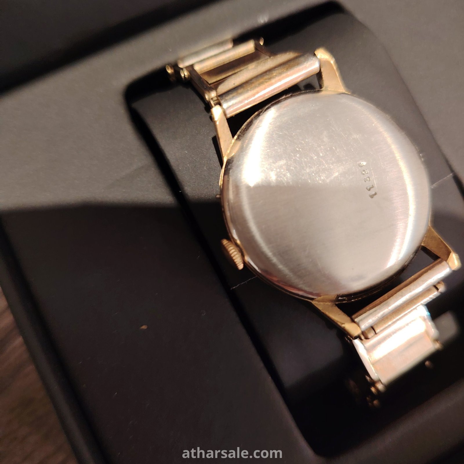 صُنعت هذه الساعة في سويسرا على يد شركة Record Geneve العريقة. هيكلها الخارجي يبدو مطلياً بالذهب أو مصنوعاً من الذهب الخالص، وهو ما كان شائعاً في الساعات الفاخرة لتلك الفترة. أما أهم ما يميزها فهو حركتها الداخلية (الماكينة) التي تعمل يدوياً، وهي ما يمنحها قيمتها الحقيقية. يتطلب تشغيلها لفها يدوياً بشكل دوري لتخزين الطاقة في الزنبرك الرئيسي.