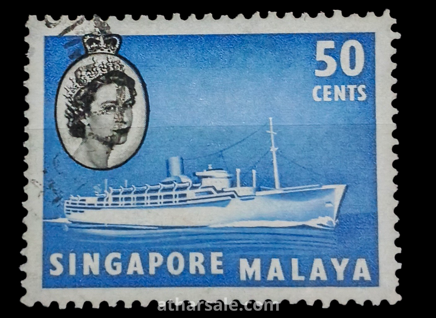 طابع المستعمرة البريطانية فى سينغافورا الملكة إليزابيث