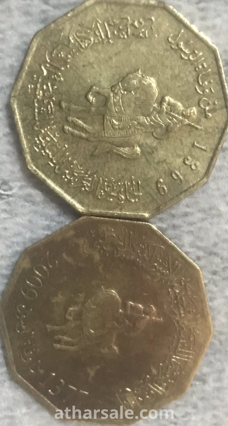 طقم عملات ليبيه مكون من عملتين فئة الربع دينار من مجموعة العملات التذكارية النادره لذكري وفاة الرسول