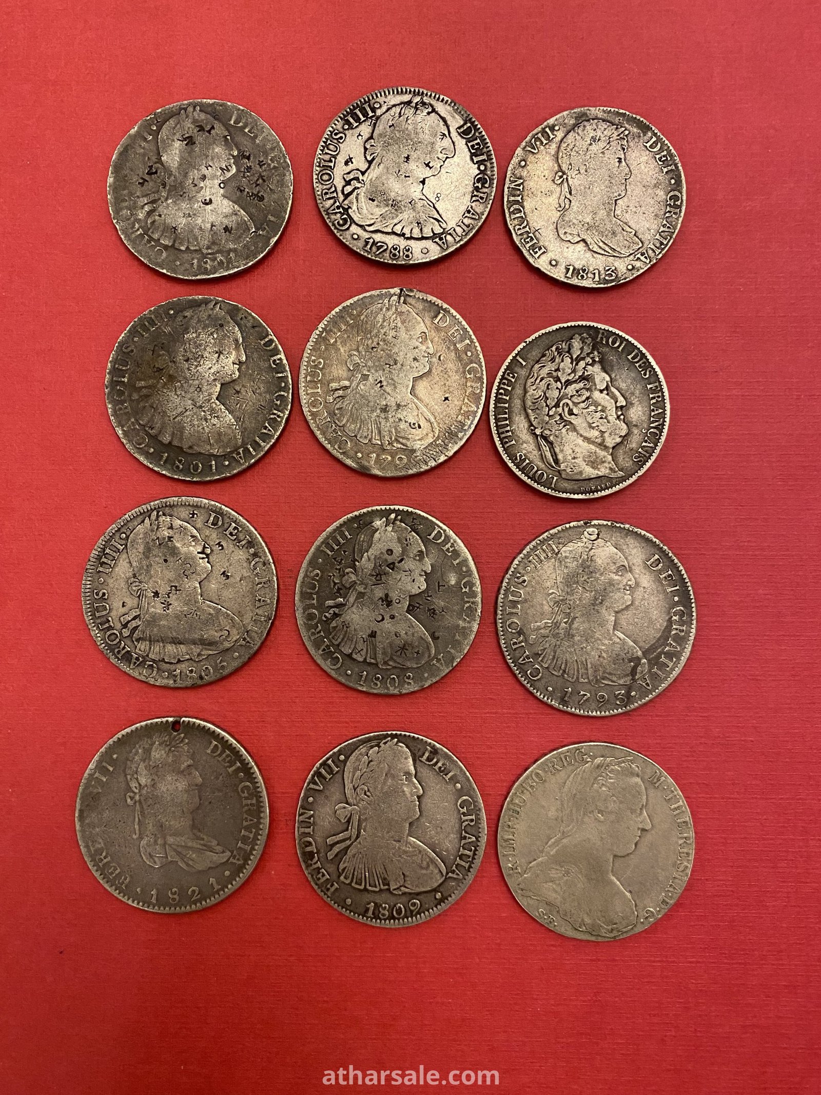 عملات معدنية فضية فرنسي وإسباني عددها 12