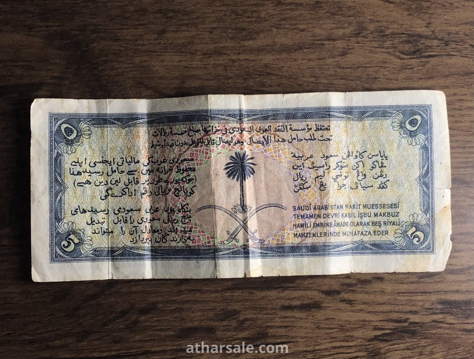 ?? للبيع: ورقة نقدية سعودية قديمة من فئة ٥ ريالات