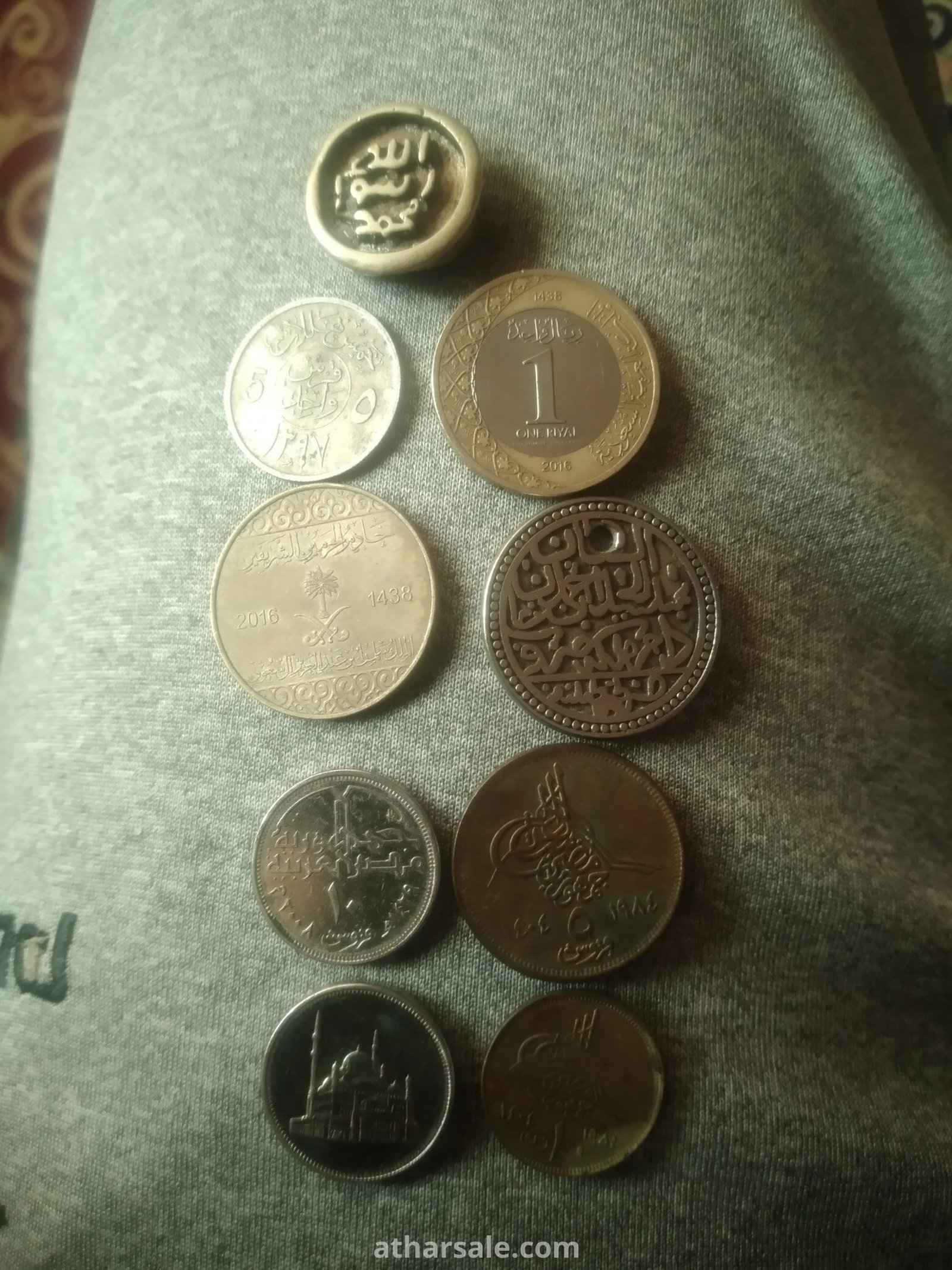 عملات قديمة وختم خاتم يحمل اسم حبيب الخلق محمد رسول الله صلي الله علية وسلم