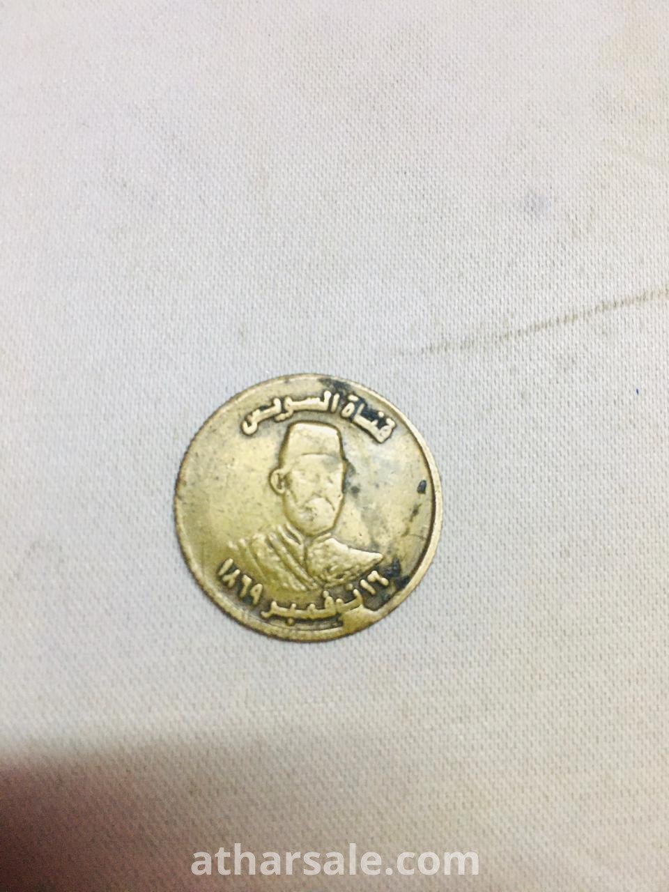 عملة تذكارية عمرها 156 عام لافتتاح قناة السويس القديمة منقوش عليها صورة الخديوي إسماعيل