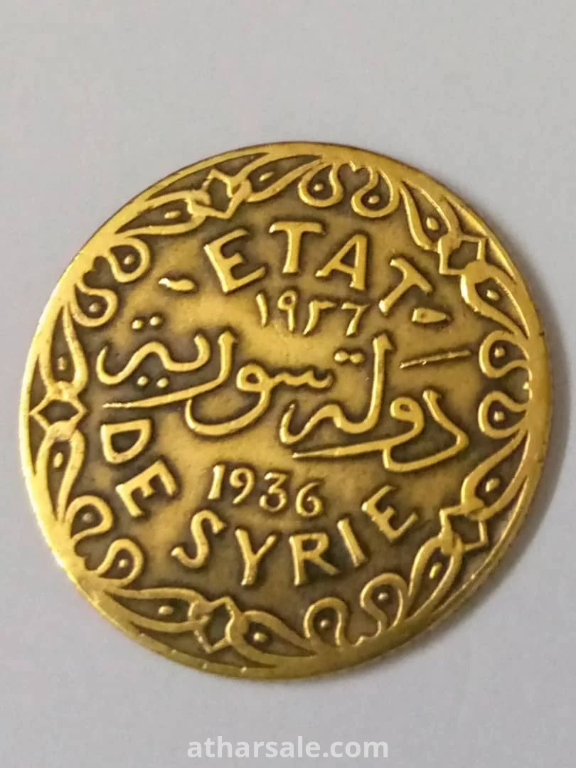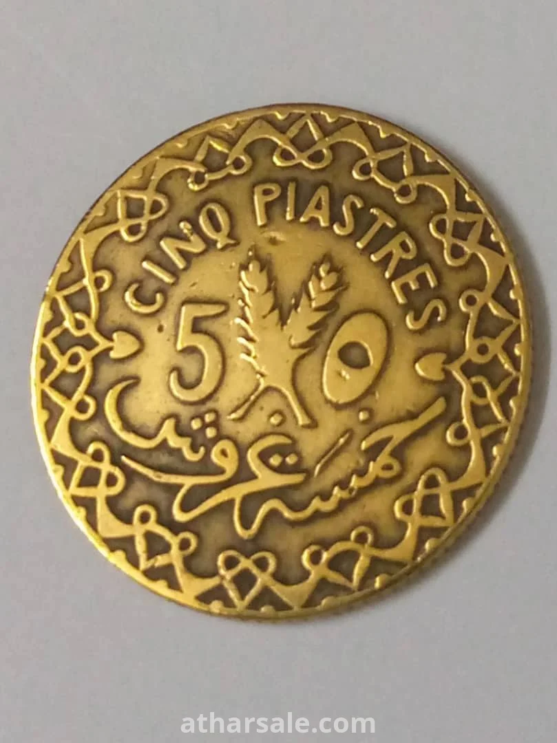 عملة خمسة قروش سورية في زمان حكم فرنسا لسوريا عام 1936/م مصنوعة من النحاس الأصفر