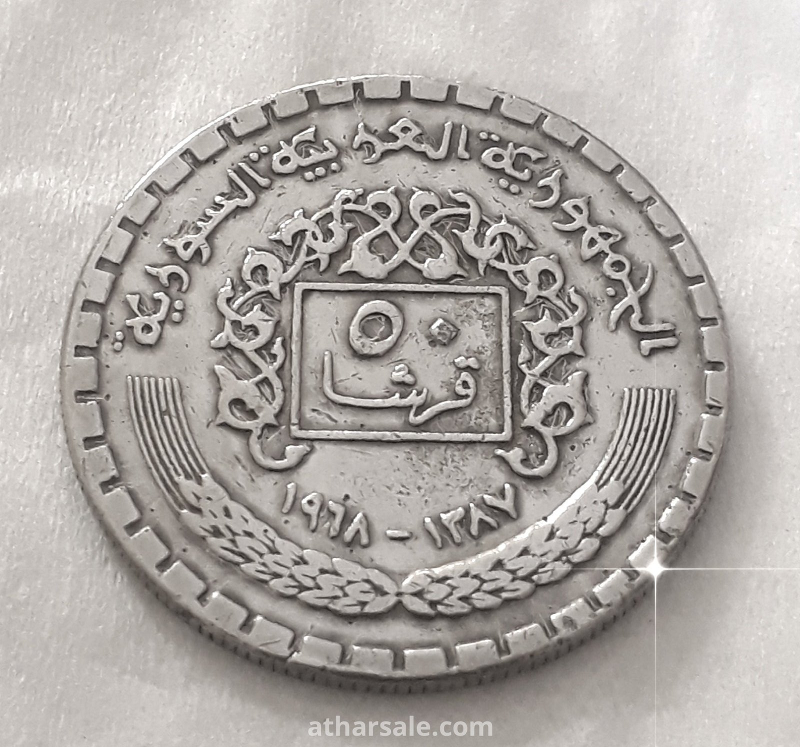 خمسون قرشا للجمهورية السورية تاريخ السك ١٩٦٨ صنعت من معدن النيكل نظافة ممتازة