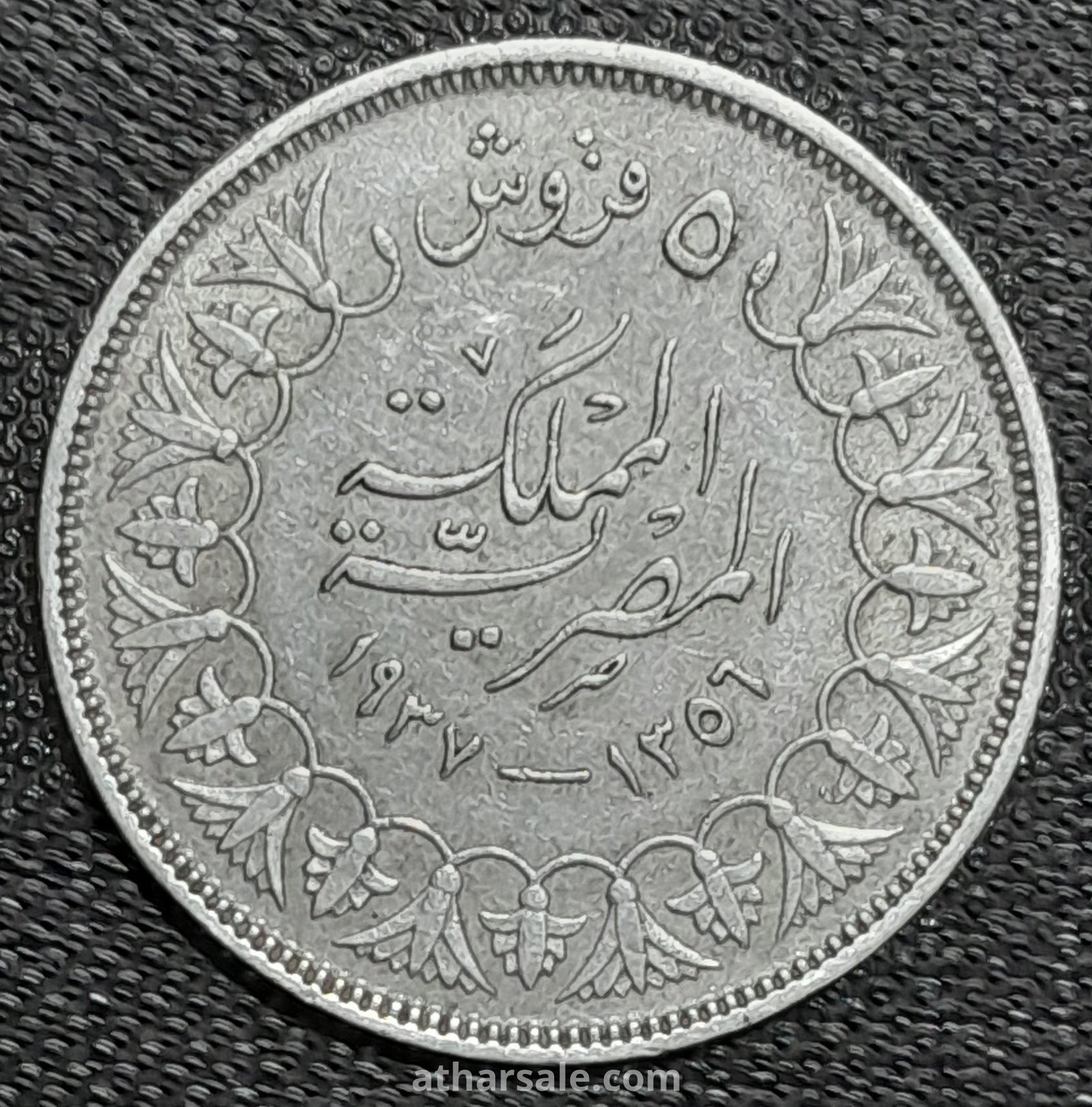 عملة فضية مصرية نادرة فئة 5 قروش إصدار عام 1937 عهد الملك فاروق الأول ملك مصر
