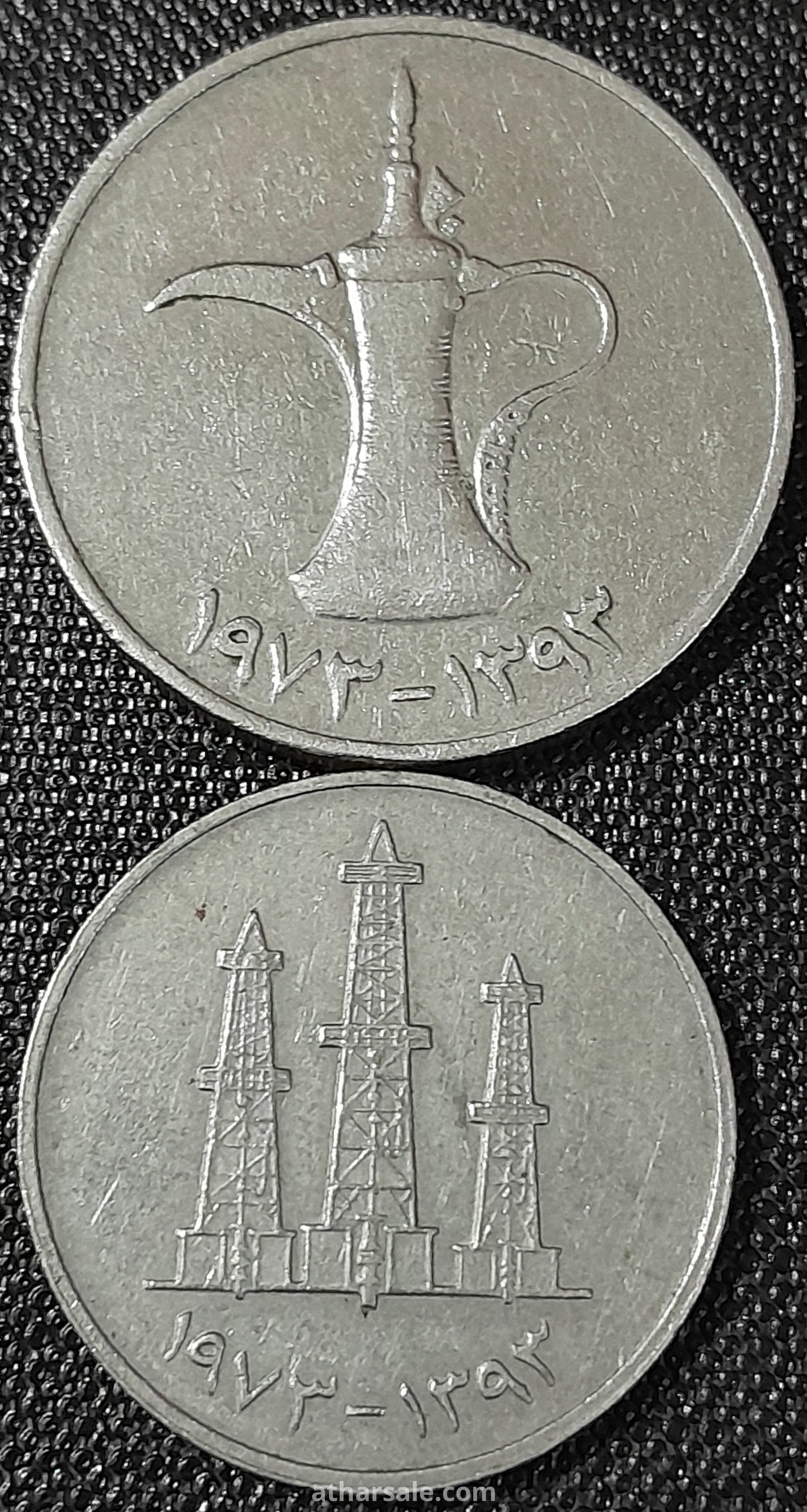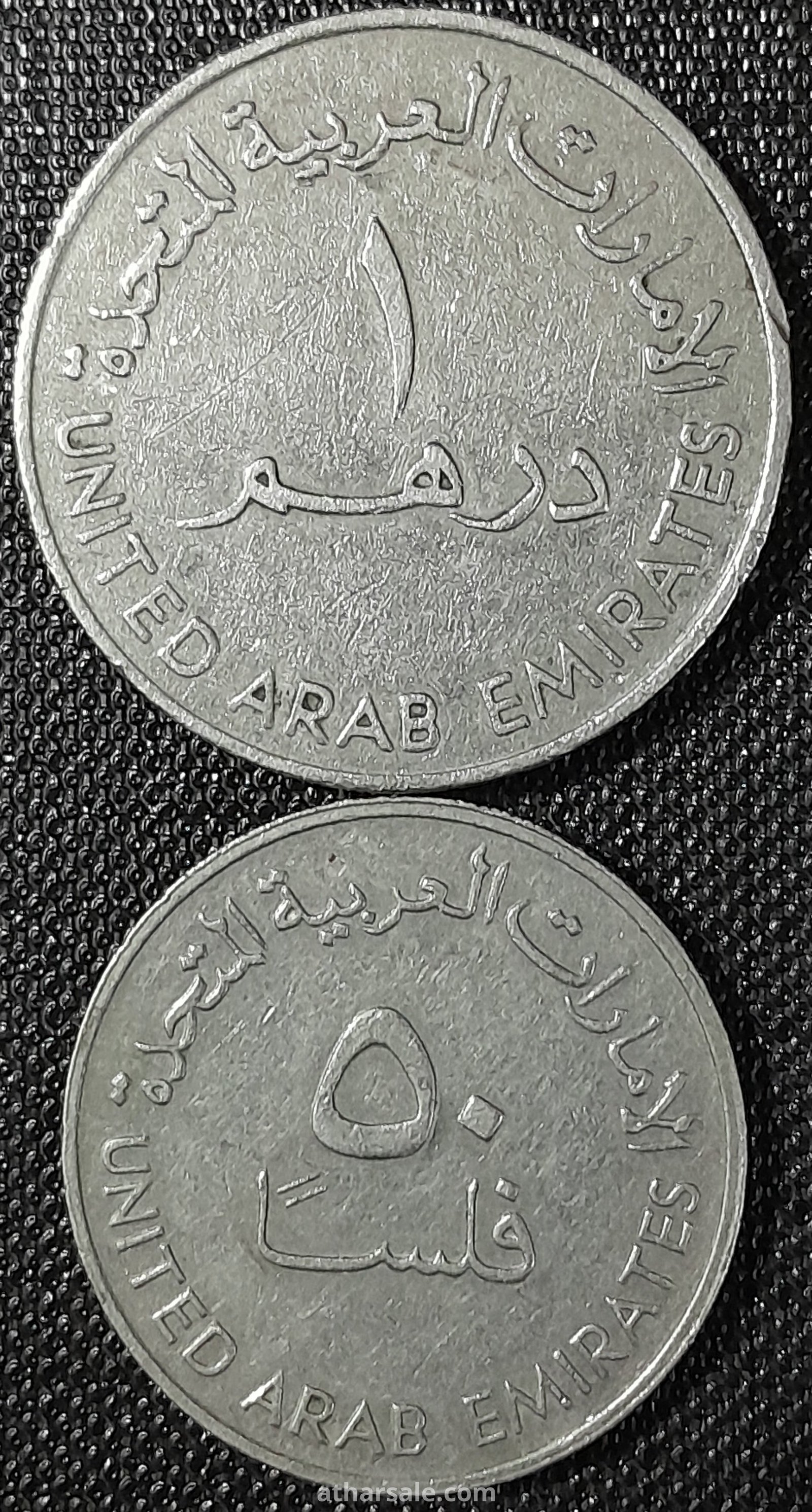 عدد 2 عملة معدنية إماراتية إصدار عام 1973 فئة واحد درهم و 50 فلسا