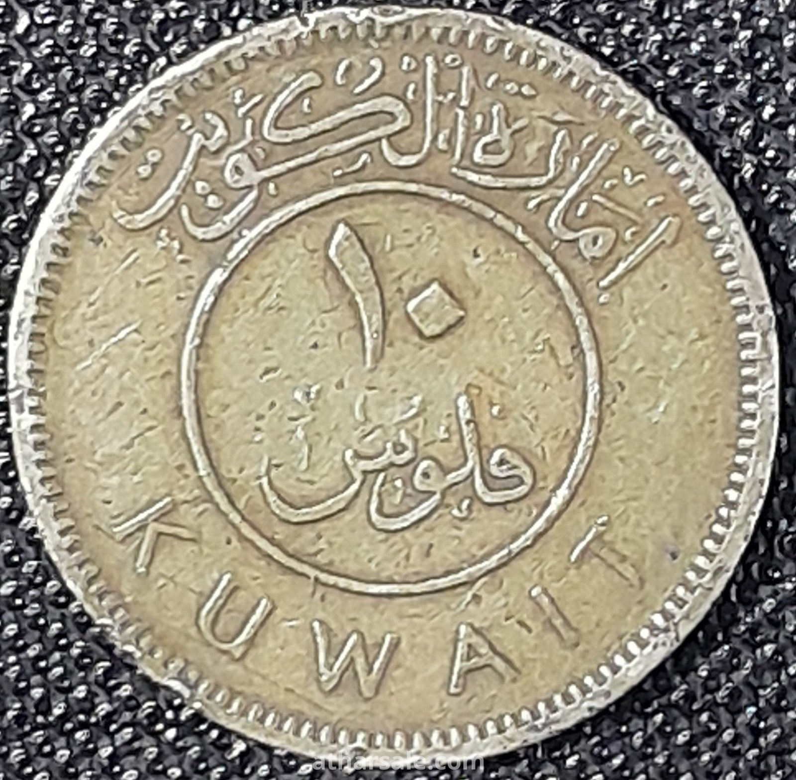عملة معدنية كويتية من النيكل والنحاس الأصفر فئة 10 فلس تم إصدارها عام 1961 فترة حكم عبدالله الثالث
