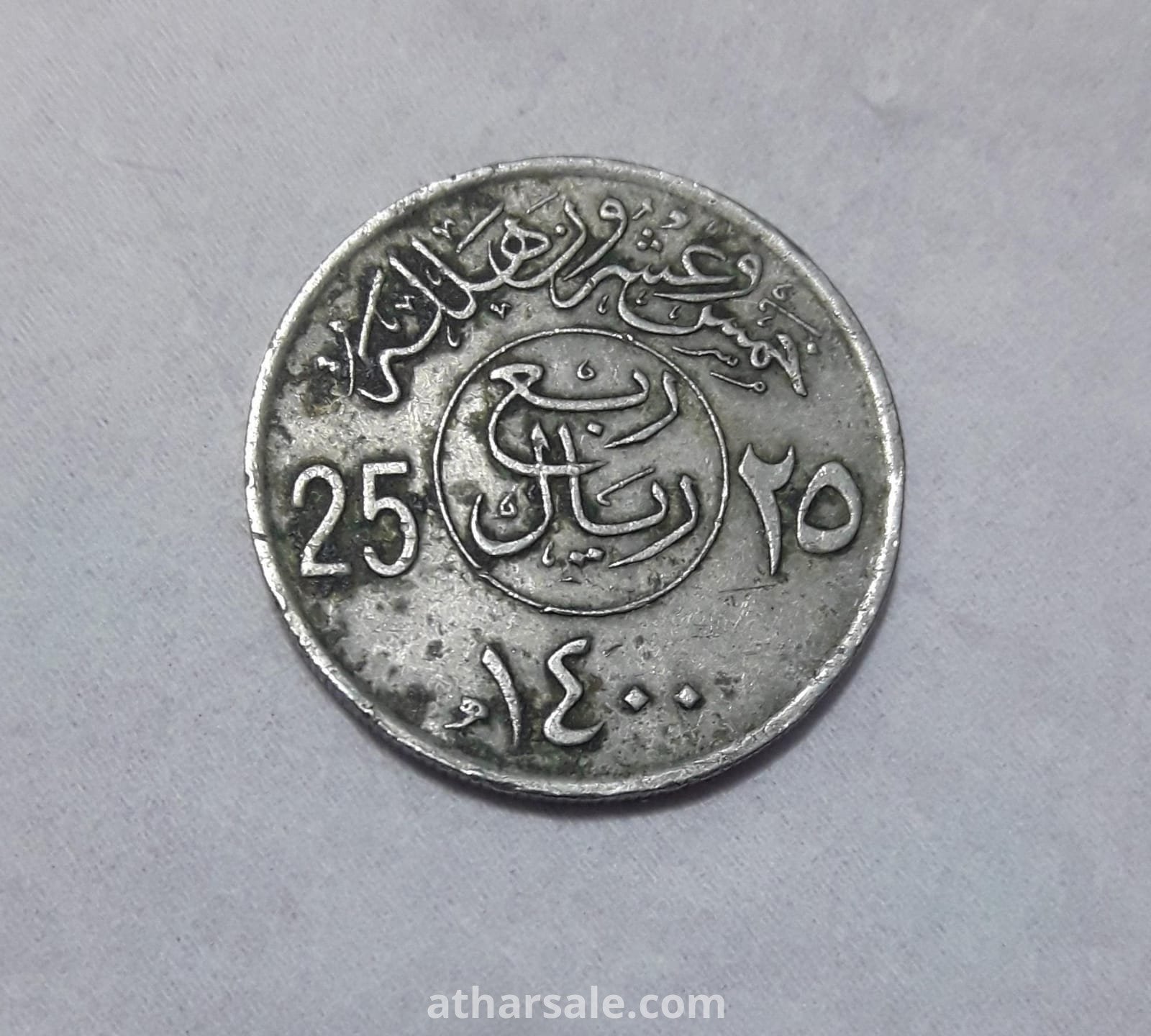 عملة معدنية سعودية ربع ريال ( 25 هللة ) إصدار عام 1400 هجرية .