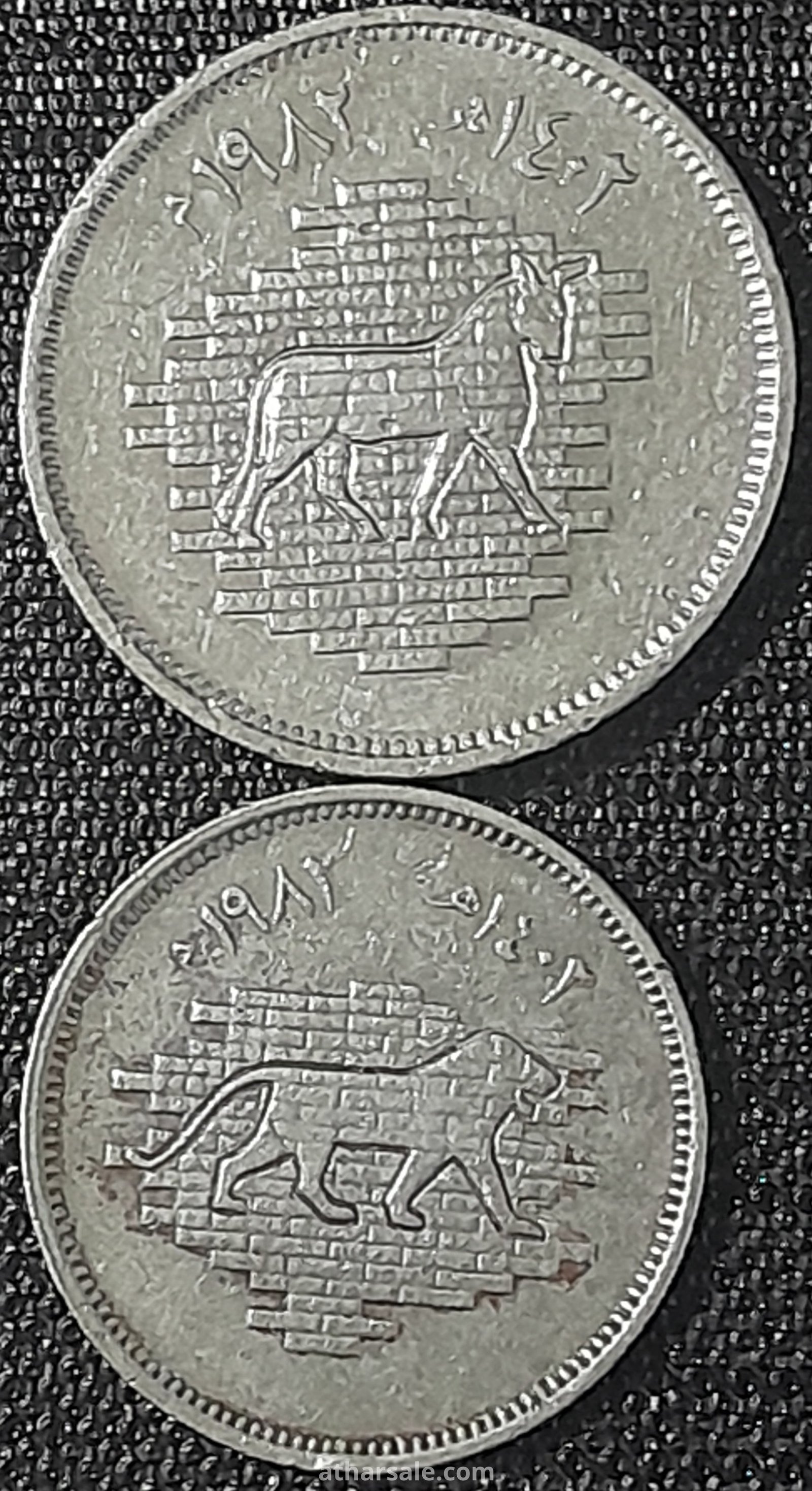 عدد 2 عملة معدنية عراقية تذكارية نادرة إصدار عام 1982 فئة 50 و 25 فلسا