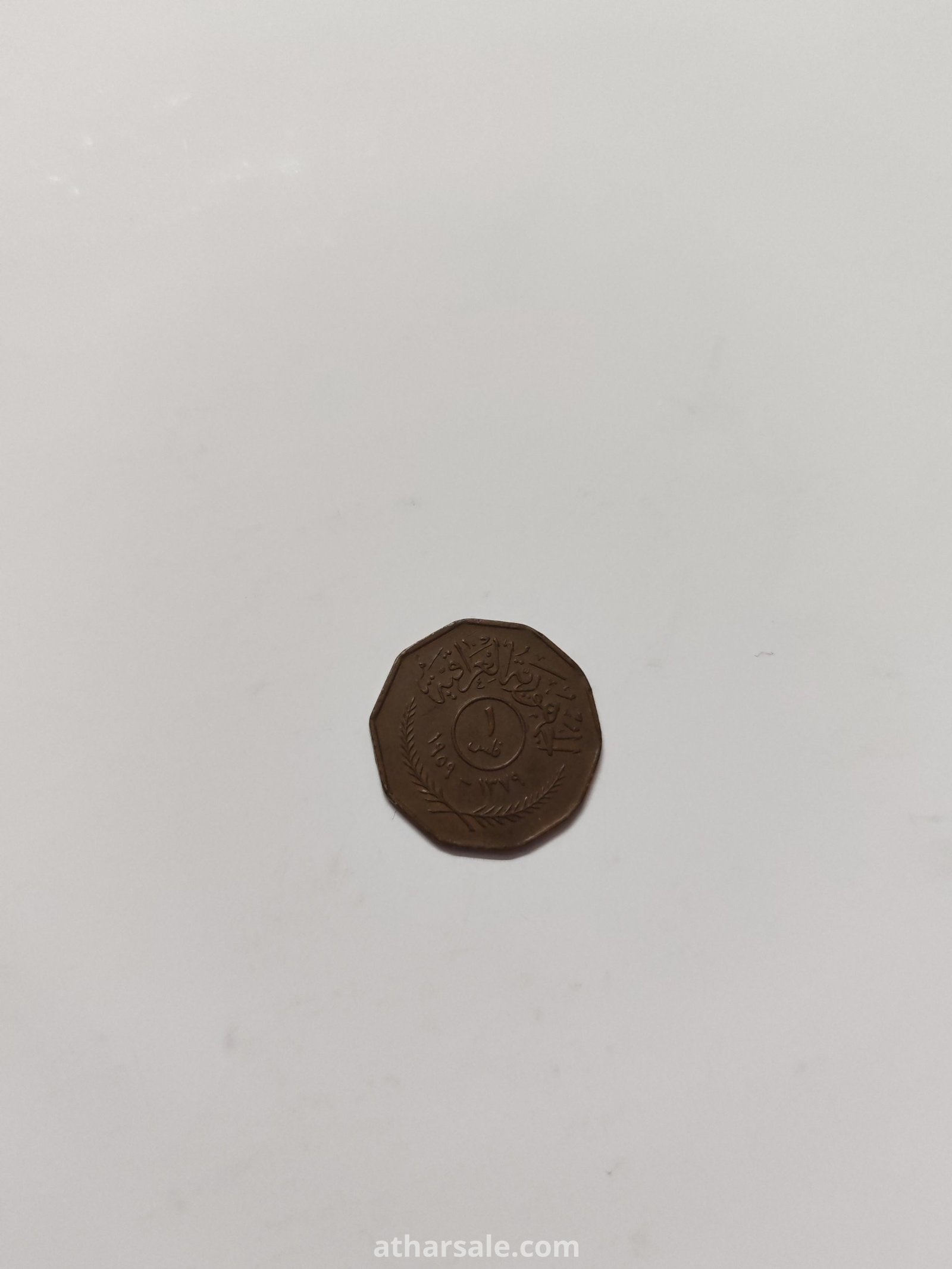 هذه القطعة تعيدك إلى تاريخ العراق العريق، فهي ١ فلس عراقي صدر عام ١٩٥٩م (١٣٧٩هـ). هذه العملة ليست مجرد "فكة"، بل هي شاهد على تحول سياسي واجتماعي ضخم في تاريخ العراق.