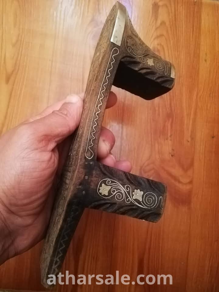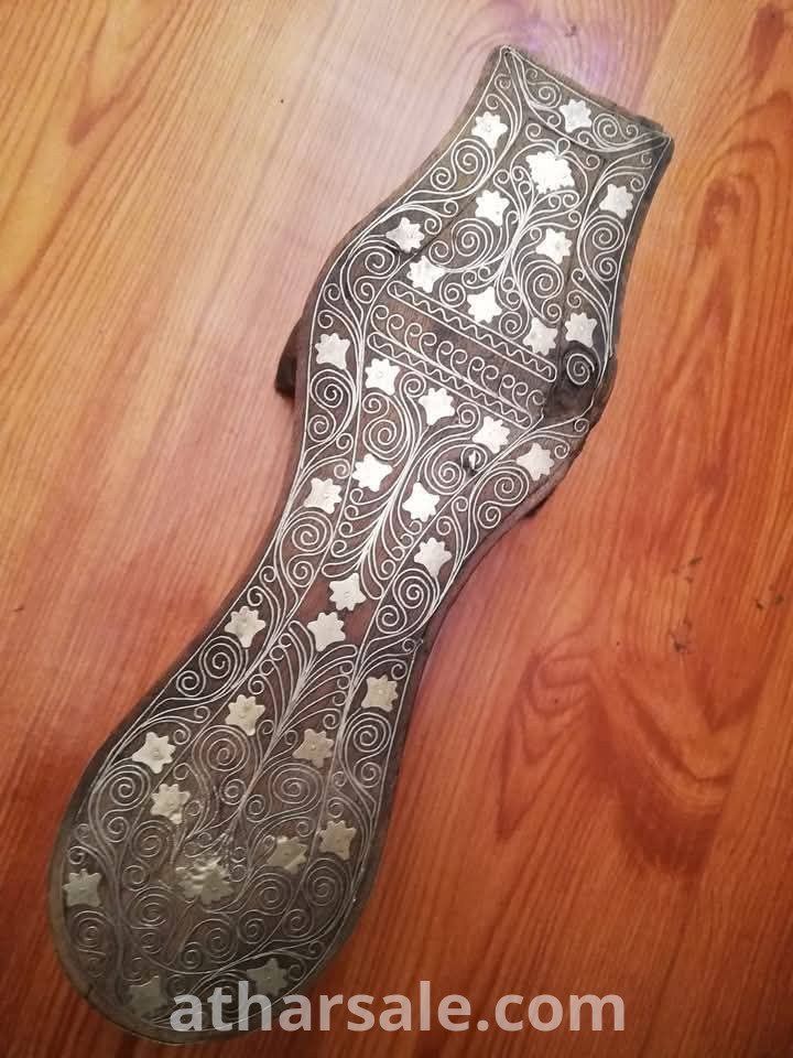 قبقاب عثماني نادر وعتيق من الخشب  تكيفت فضة دون العيار قطعة نادرة وغير مكررة