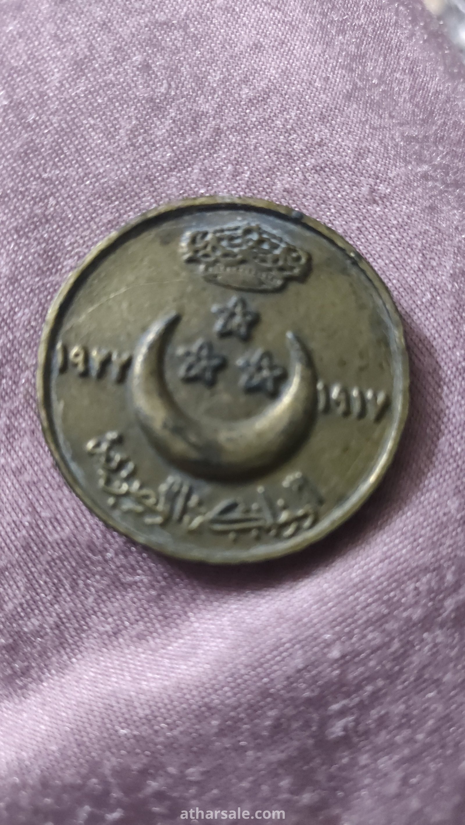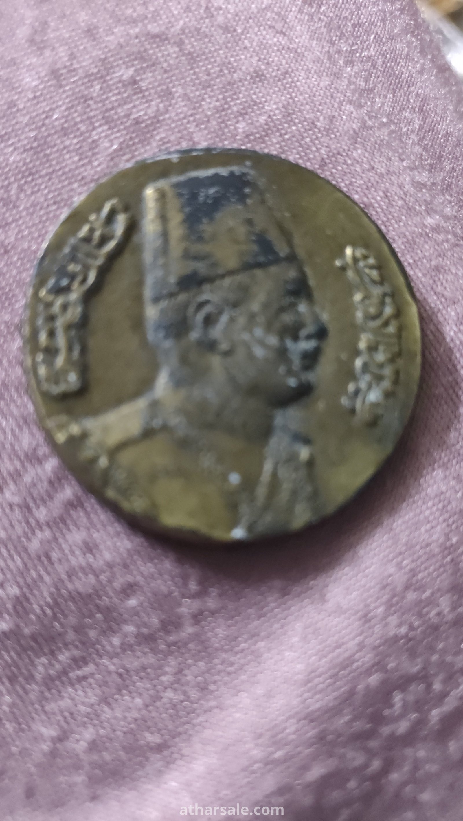 هذه قلادة أو عملة تذكارية مصرية نادرة من البرونز، تعود لعام 1917 وتخلد ذكرى تولي الملك فؤاد الأول الحكم.