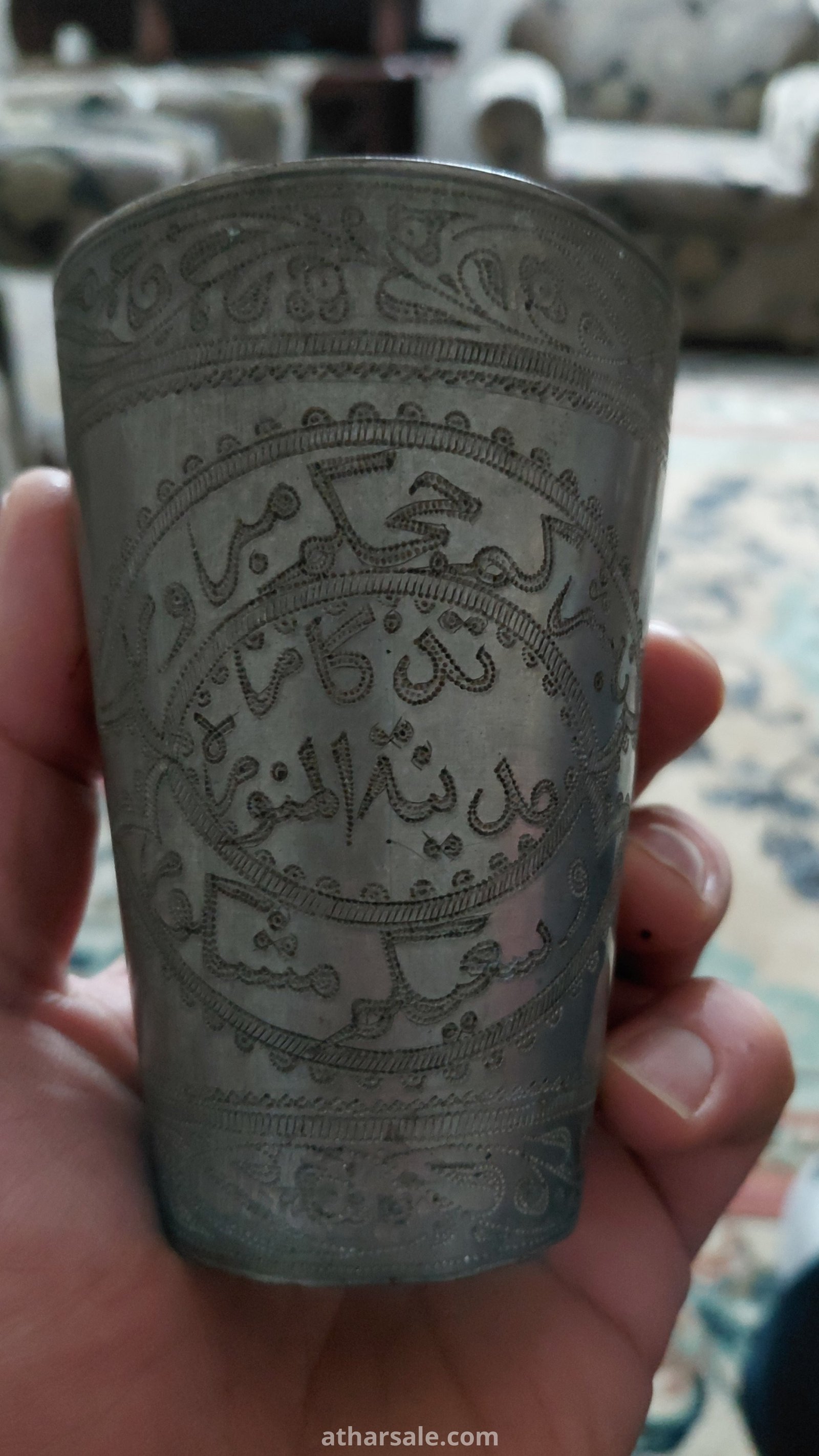 كأس معدنية منقوشة يدويا من تاريخ ١٣٥٤ هجري