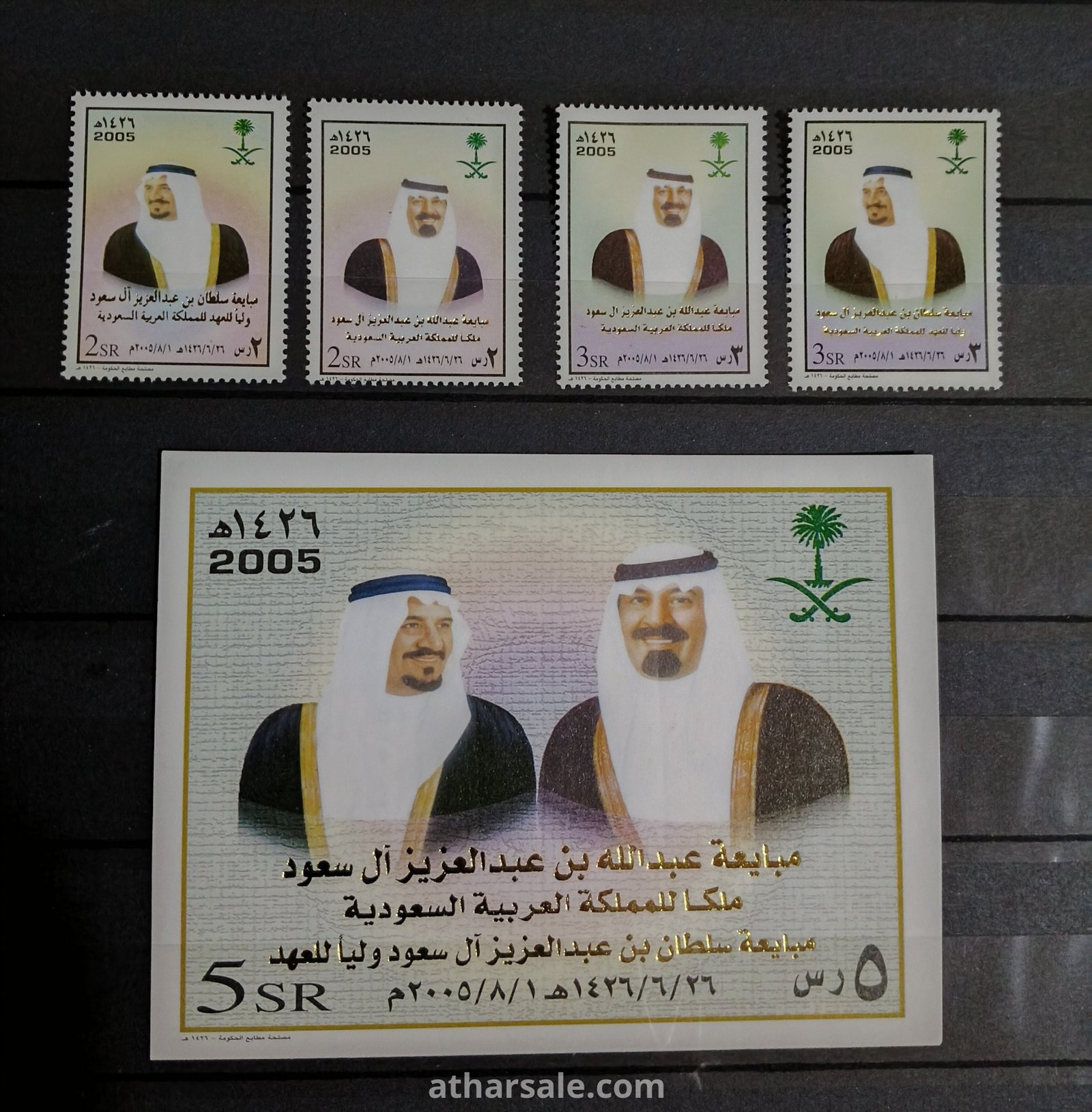 طابع اصلى للمجموعة والبطاقة لمبايعة الملك عبدالله ملكا ومبايعة الامير سلطان ولى العهد للمملكة العربية السعودية
