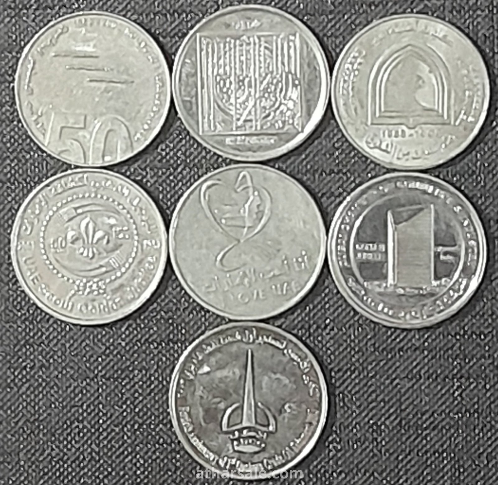 تتكون المجموعة من 7 عملات تذكارية جميعهم فئة واحد درهم وكل واحدة منهما تحمل ذكرى وتاريخ مختلف عن الأخرى