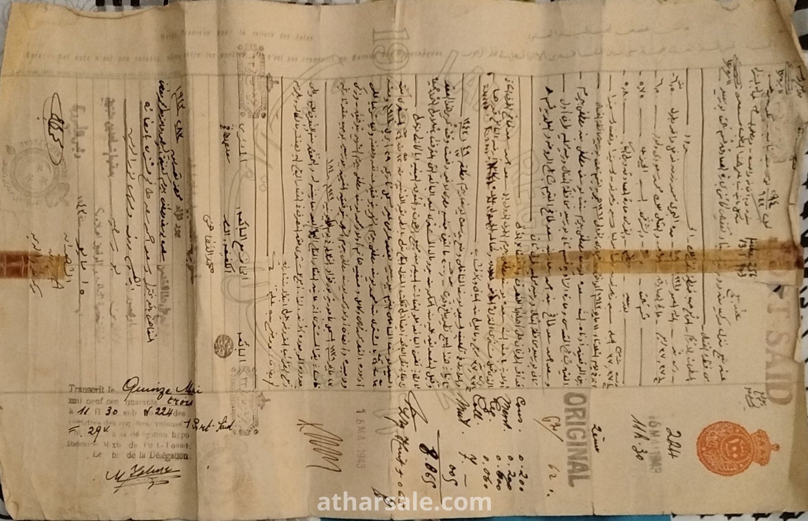 للبيع مجموعة وثائق تاريخية أصلية ونادرة تعود للحقبة الملكية في مصر (عصر الملك فاروق الأول). الوثائق تؤرخ لمعاملات عقارية وتنازلات في مدينتي بورسعيد وبورفؤاد الاستراتيجيتين.