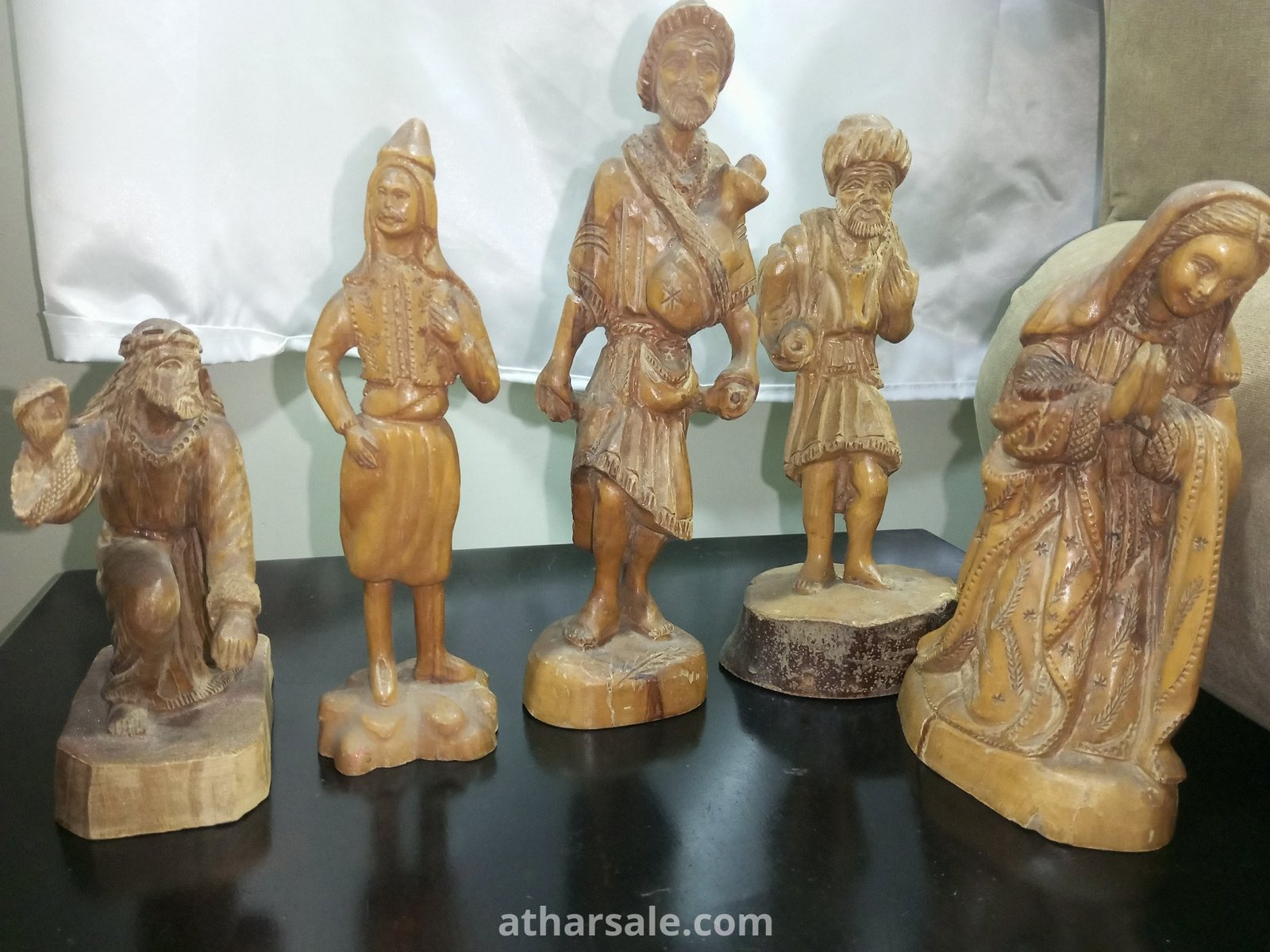منحوتات خشبية من خشب الزيتون شغل فلسطين قديم جداً مشغول يدوي قياسات من 22 سم لغايه 29 سم قطع ممتازه جدا ما في عيوب