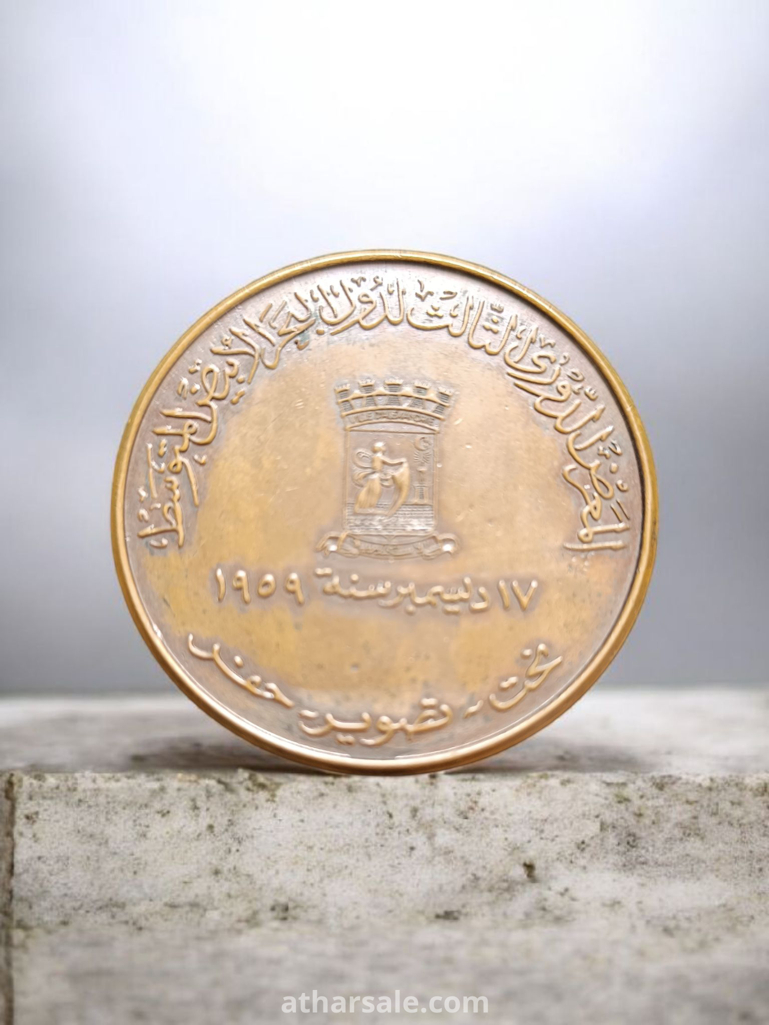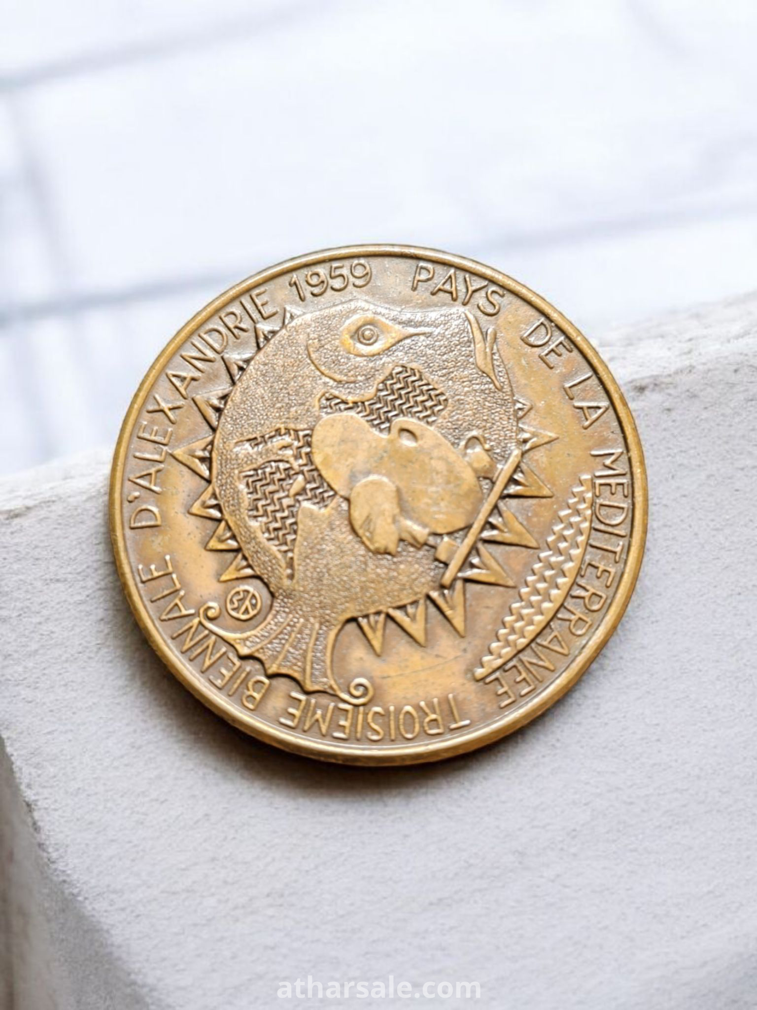 ميدالية تذكارية أصلية صدرت بمناسبة المعرض الثالث الدولي لدول البحر المتوسط (بينالي الإسكندرية) الذي أقيم في 1959.