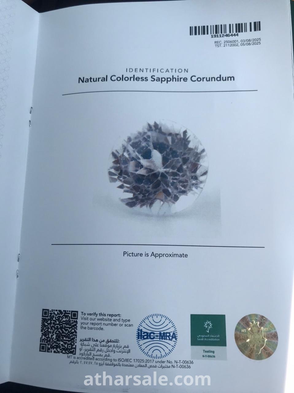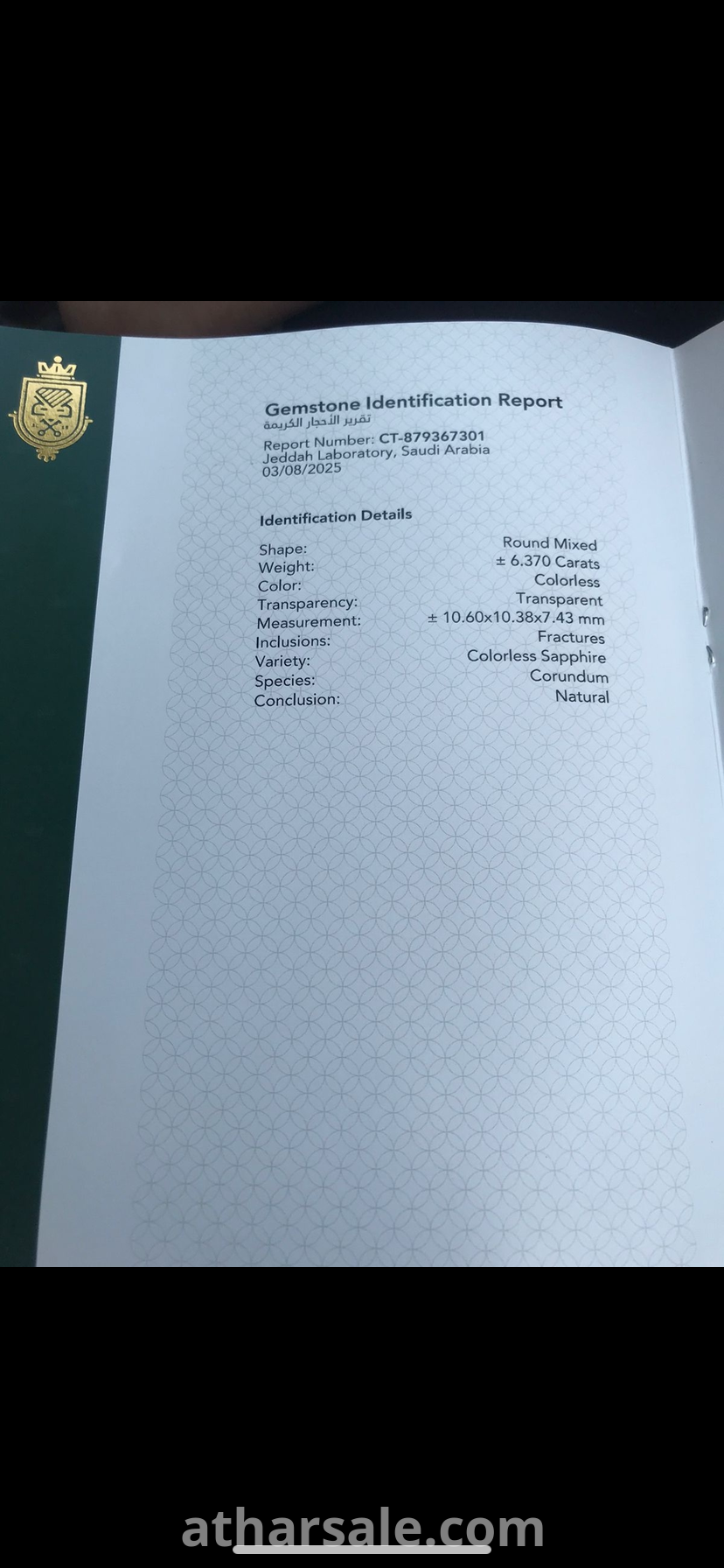 ياقوت ابيض نادر الحجم 6.37 قيراط مع شهادة MT الموقع جدة