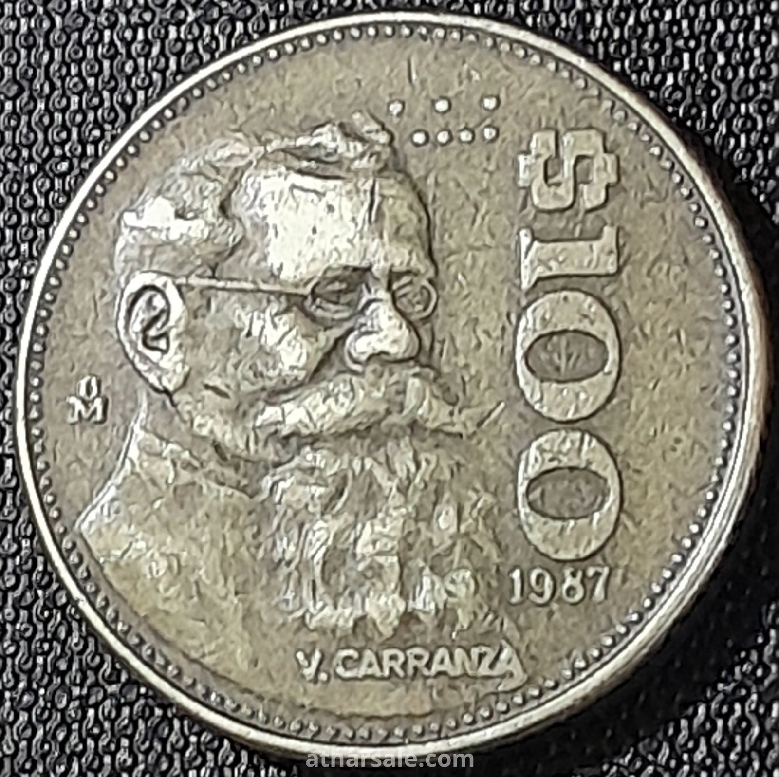عملة معدنية مكسيكية من الألمنيوم والبرونز فئة 100 بيزو إصدار عام 1987 فترة الولايات المتحدة المكسيكية