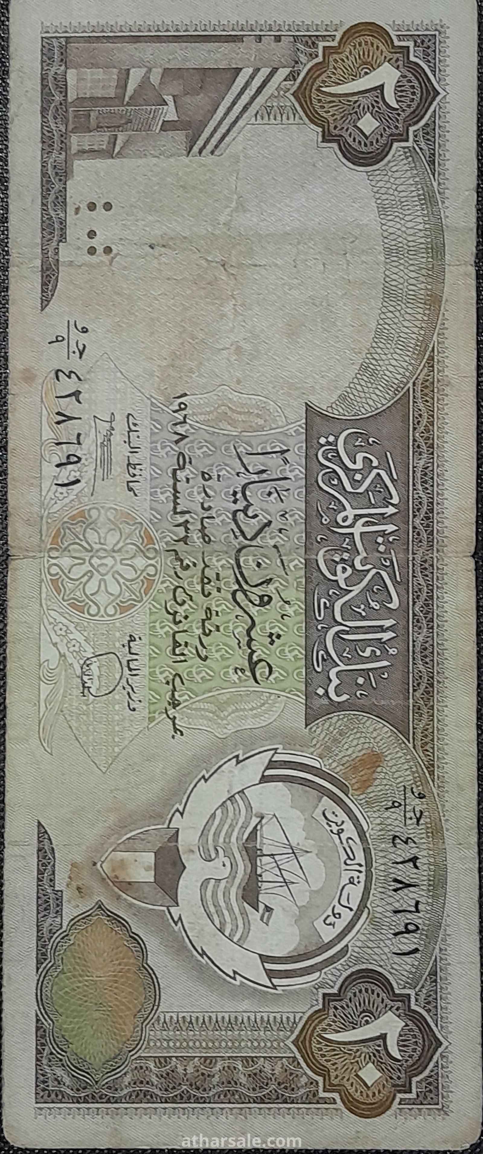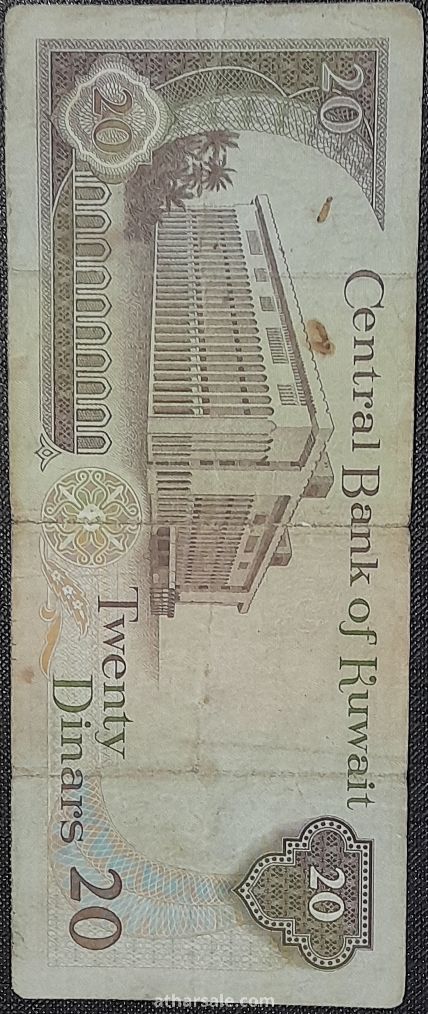 عملة ورقية كويتية فئة 20 دينار إصدار عام 1986 قامت الحكومة الكويتية بسحبها عام 1991 بسبب حرب الخليج بعد أن استمر تداولها 5 سنوات