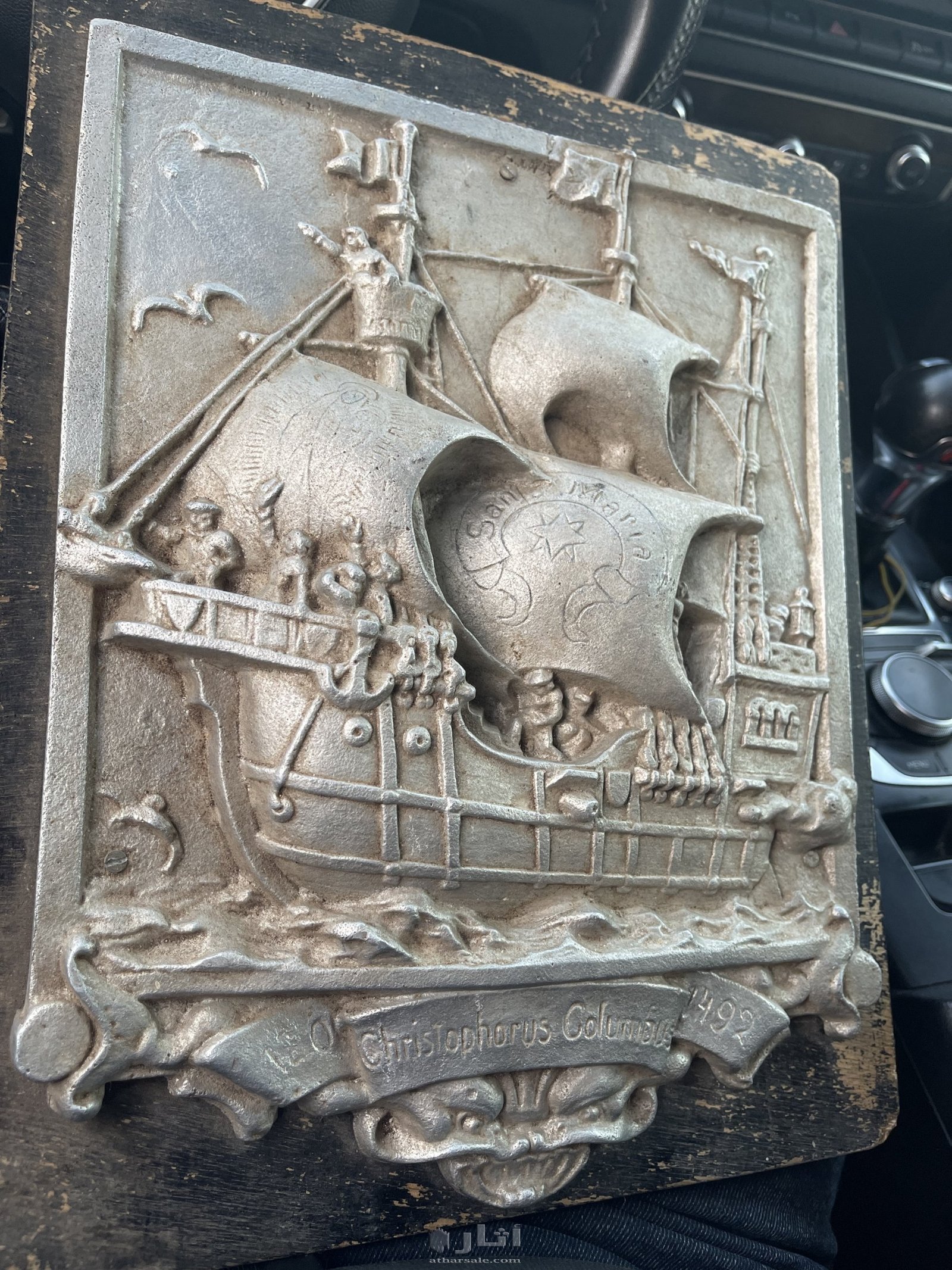 لوحة اثرية لباخرة كريستوف كولوبس و سانتا مريا مصنوع من مادة فضية ثلاثي الابعاد 42x30x2.5
