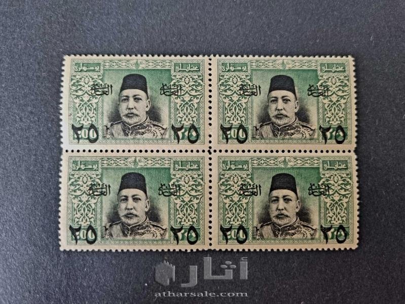 طوابع عثمانية 1914 كتلة واحدة نادر غير مختومة فئة 200قرش زائد رسوم إضافية 25...قرش..بحالة جيدة جدا