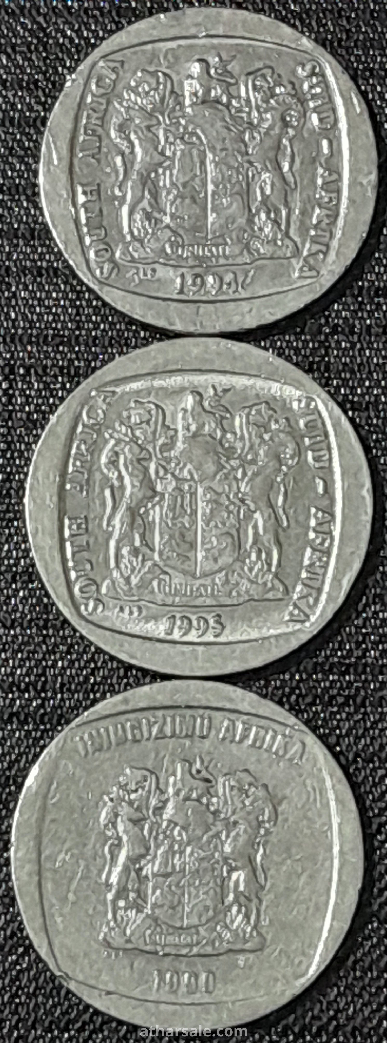 ثلاث عملات معدنية جميعهم فئة 5 راند جنوب افريقى إصدار اعوام 94 و 95 و 1999
