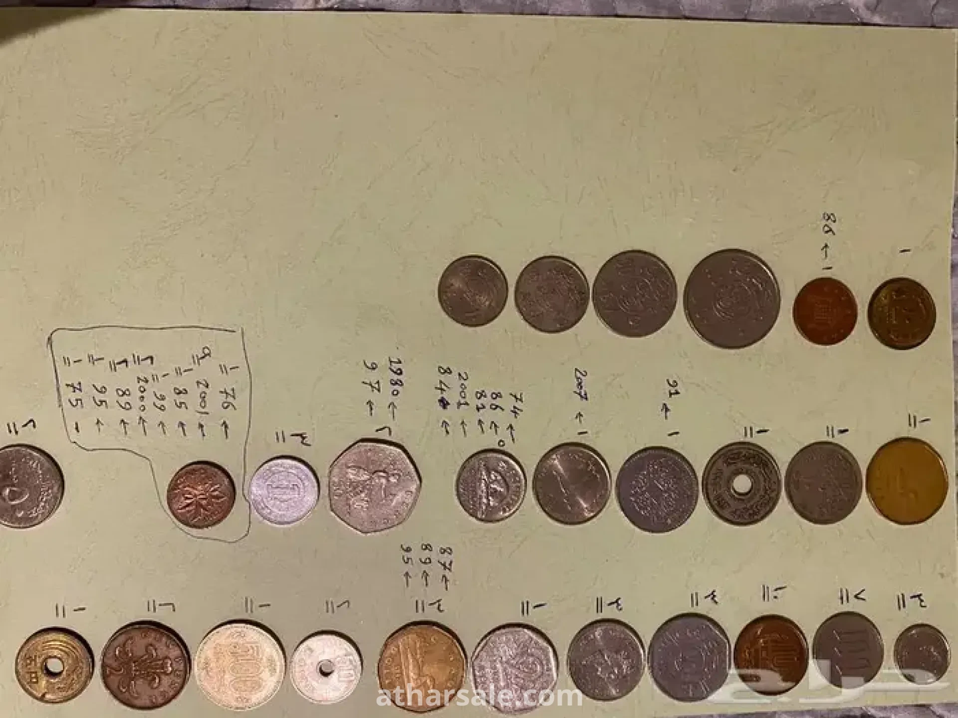 عملات معدنية متنوعة وقديمة بعضها نادر يمتد لأكثر من 40 سنة موضح أمام كل عملة العدد وتواريخ الإصدار مناسبة جدا للاقتناء ووضعها في المتاحف أو المجالس الموقع = جازان البيع على السوم