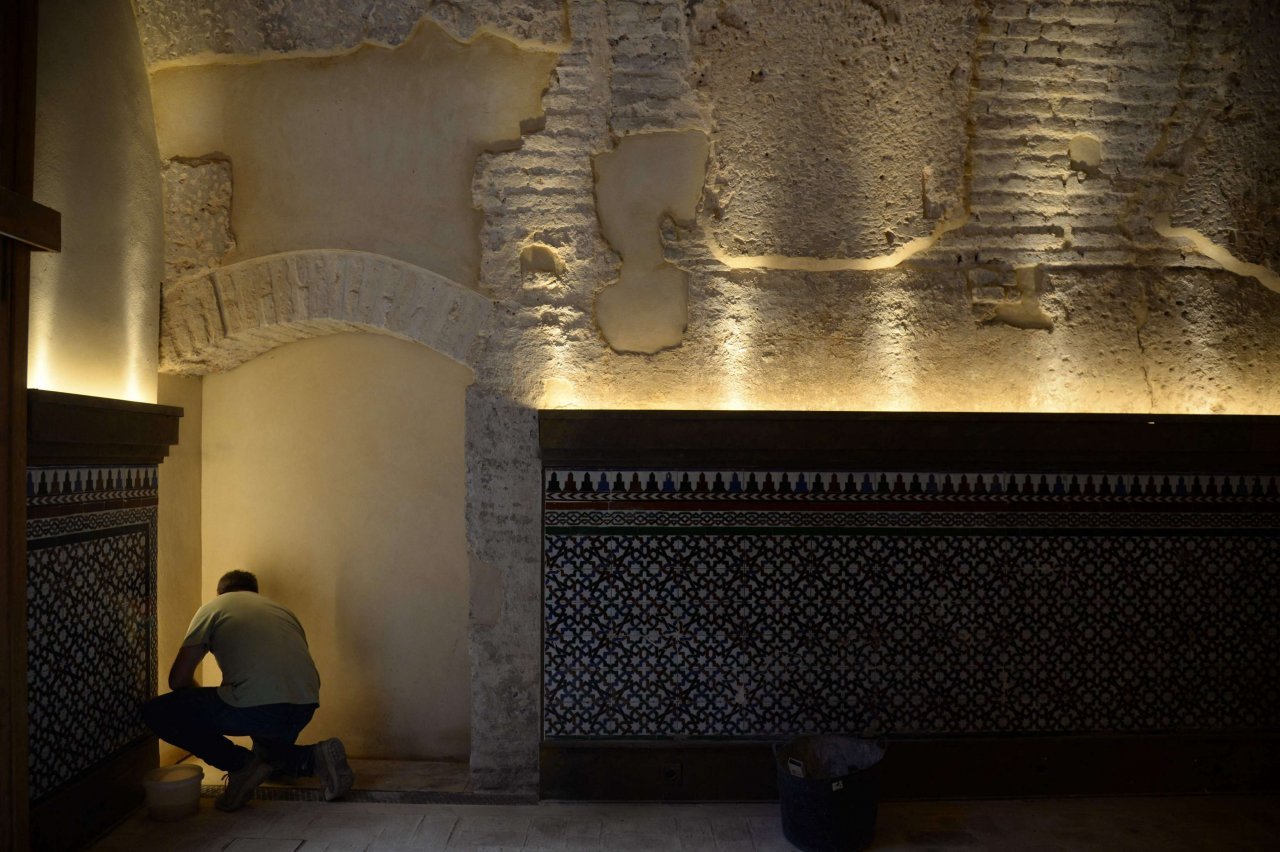 كشفت أعمال تجديد انطلقت الصيف الفائت في إحدى حانات إشبيلية جنوب إسبانيا، عن حمام من القرن الثاني عشر لا يزال في وضع ممتاز، ما يتيح للزبائن تناول مشروبات مع تأمل لوحات وزخارف تراثية.