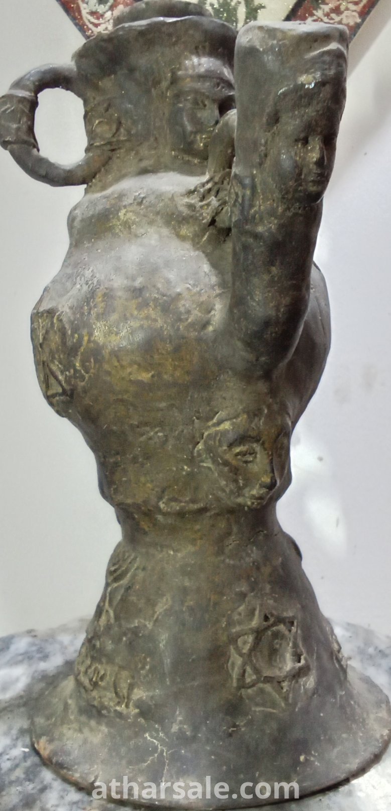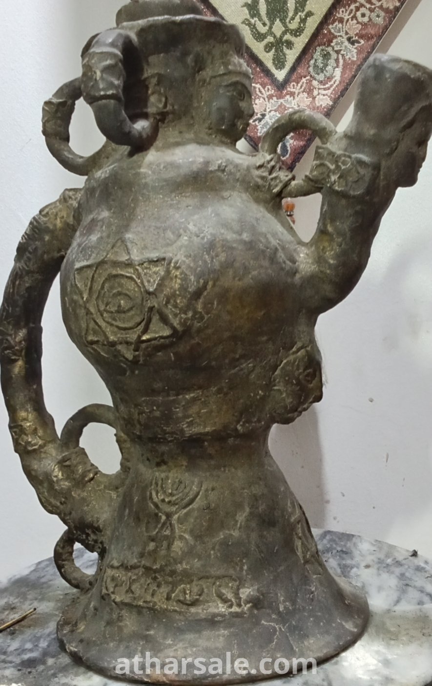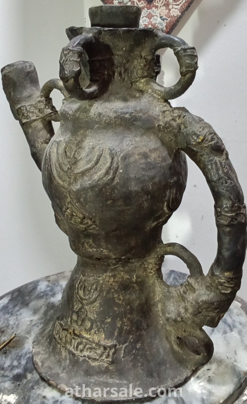 .A rare, antique Jewish jug, a unique piece, over 500 years old, made of metal surrounded by an unknown magnetic material and plated in gold. Height about 45 cm, weight over 5 kg.