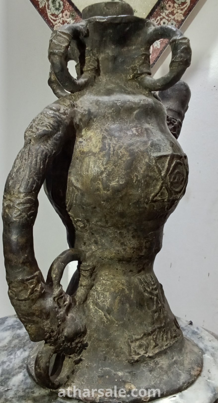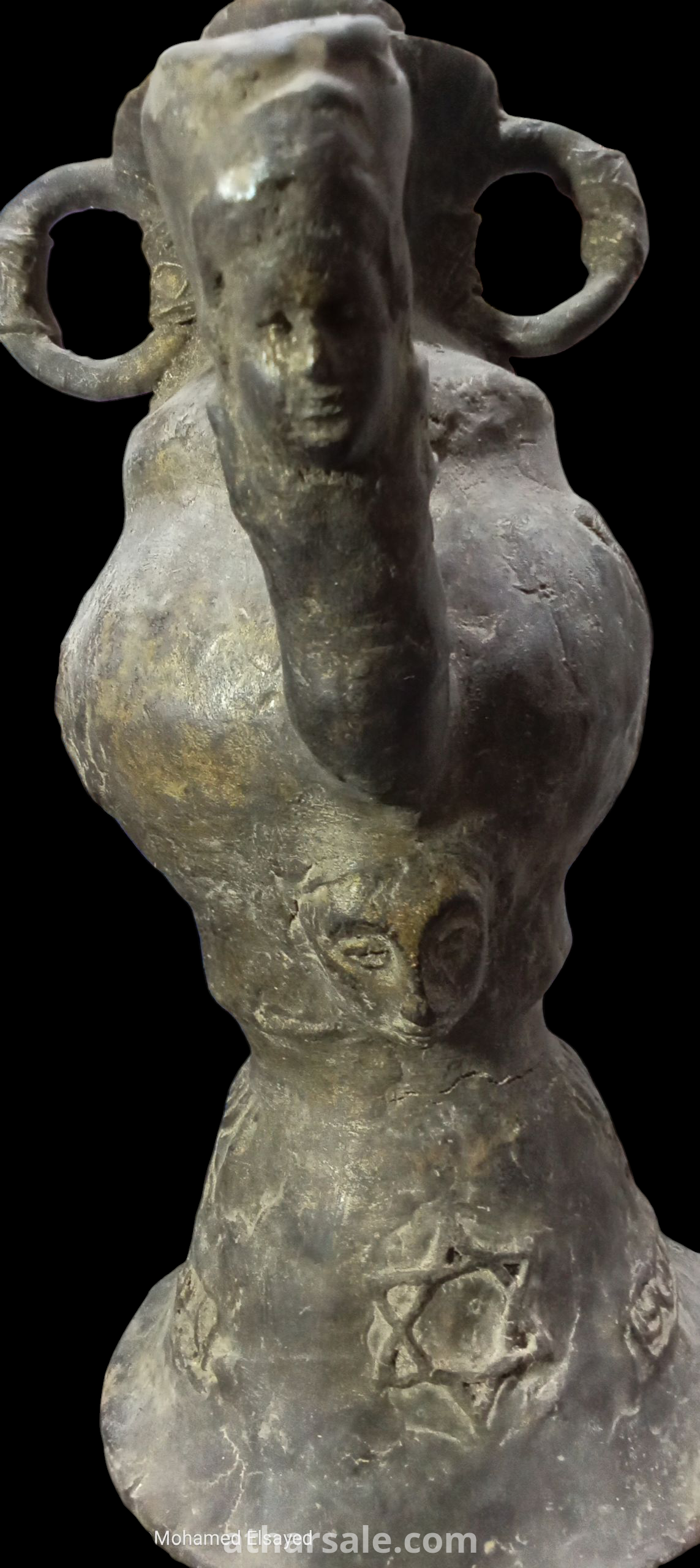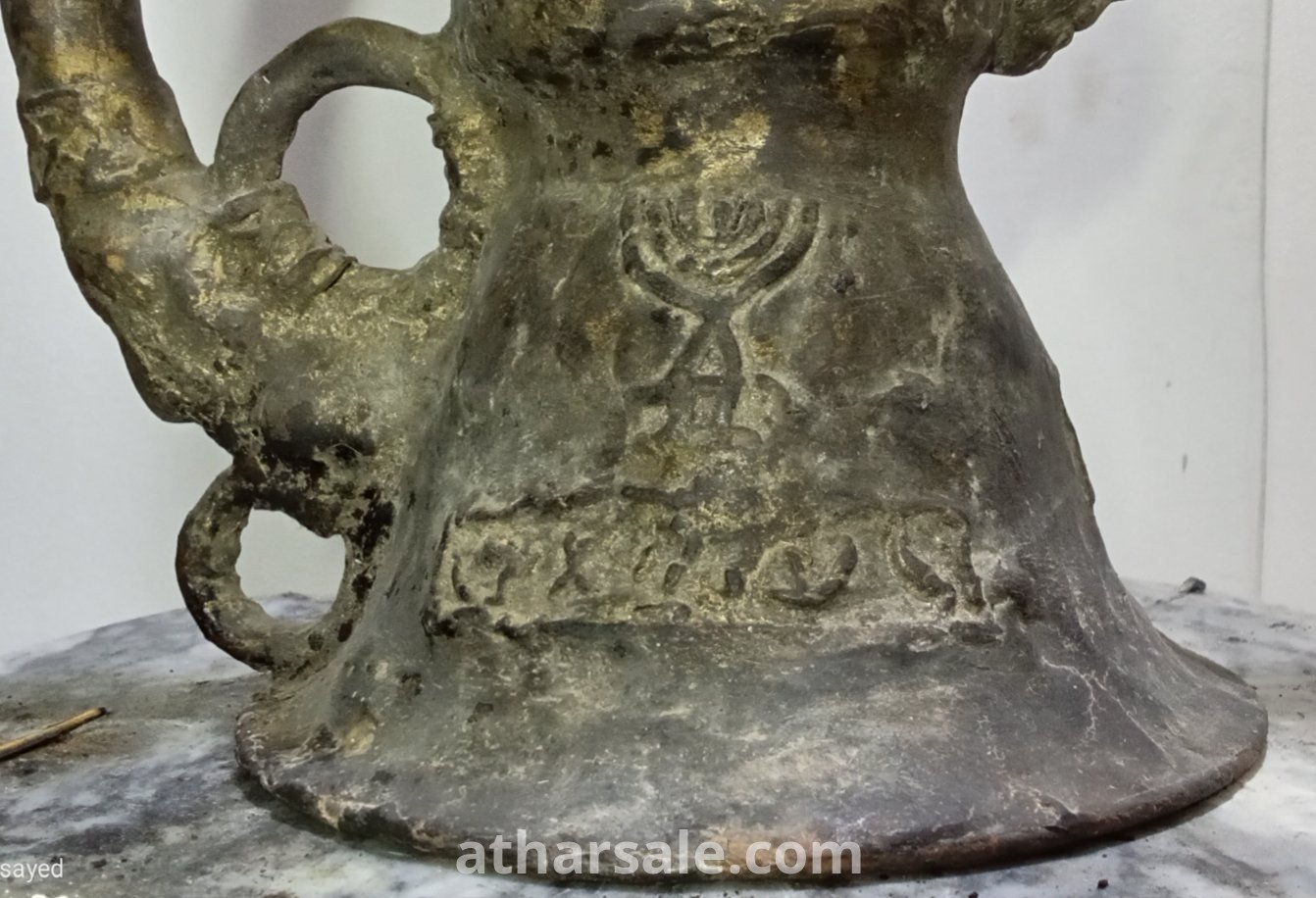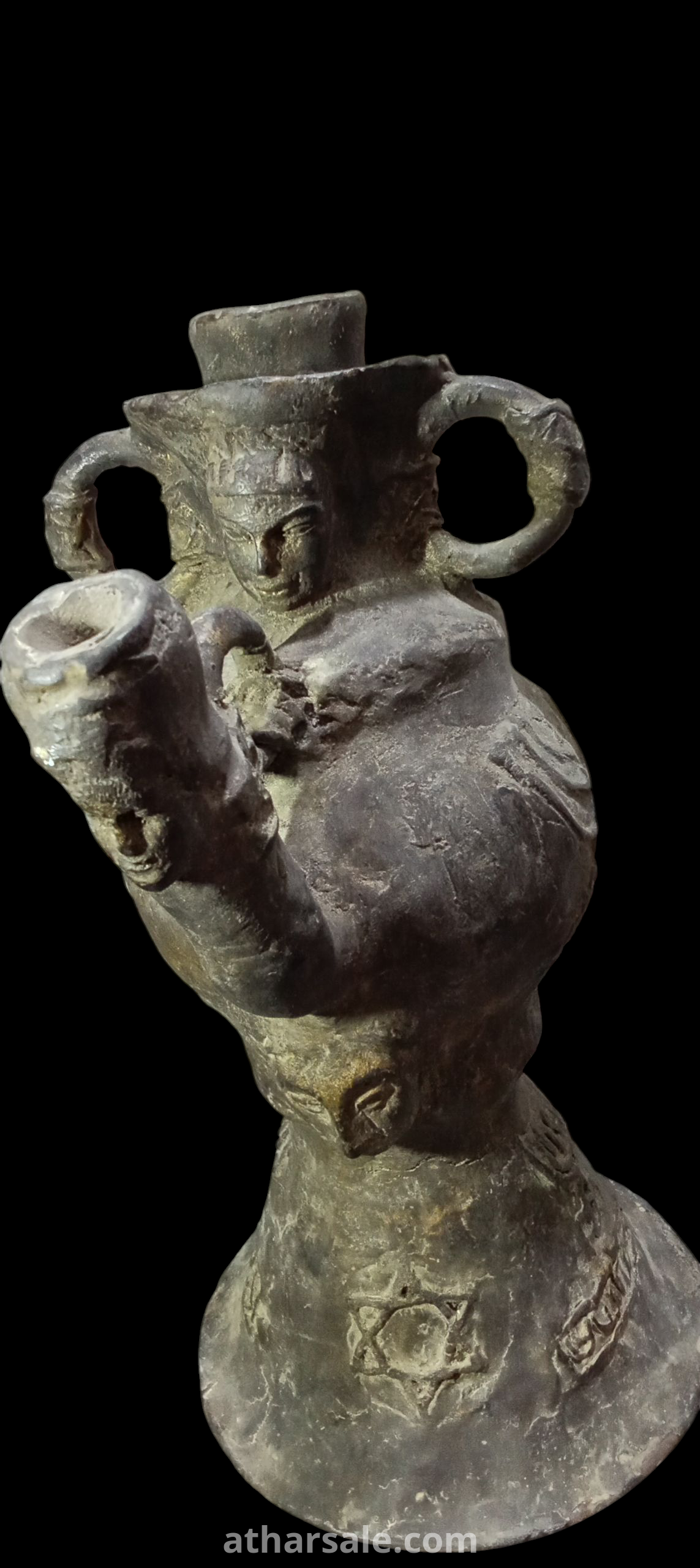 .A rare, antique Jewish jug, a unique piece, over 500 years old, made of metal surrounded by an unknown magnetic material and plated in gold. Height about 45 cm, weight over 5 kg.