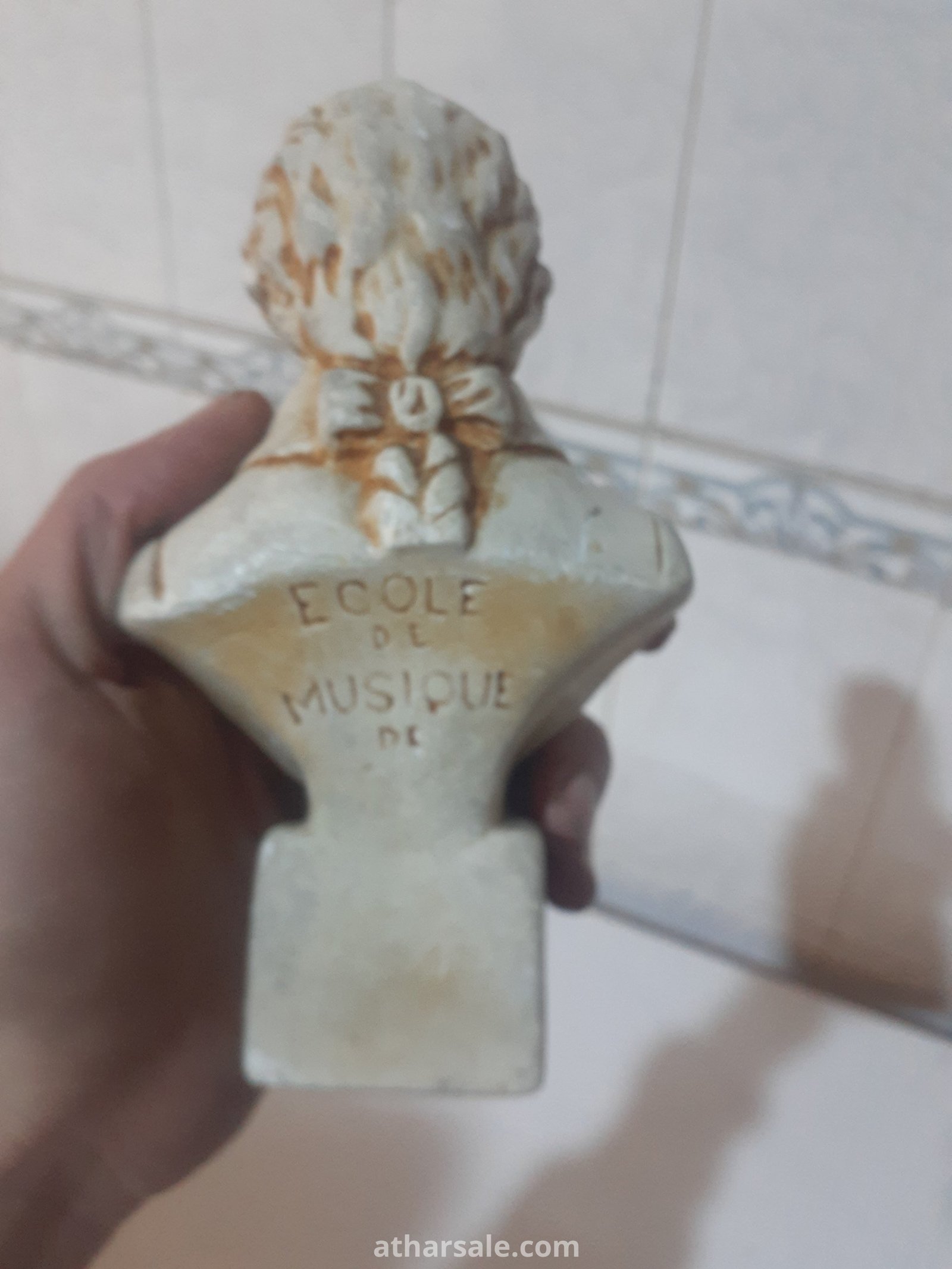 يحمل عبارة "ECOLE DE MUSIQUE DE" (مدرسة الموسيقى بـ) مكتوبة على القاعدة.تتوفر منه نسخ متعددة الأحجام، بما في ذلك نسخة بحجم 5 بوصات تقريبًا.
