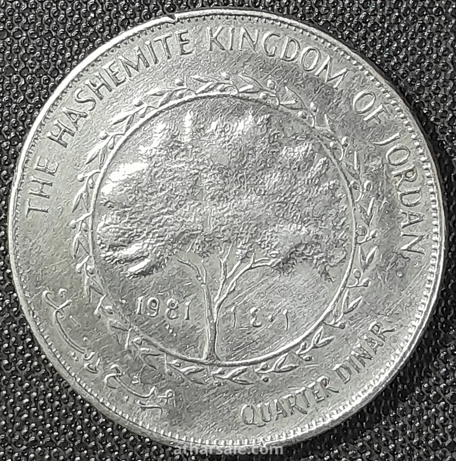 عملة معدنية اردنية فئة ربع دينار إصدار عام 1981 فى عهد الملك الحسين بن طلال تتركب من النحاس والنيكل