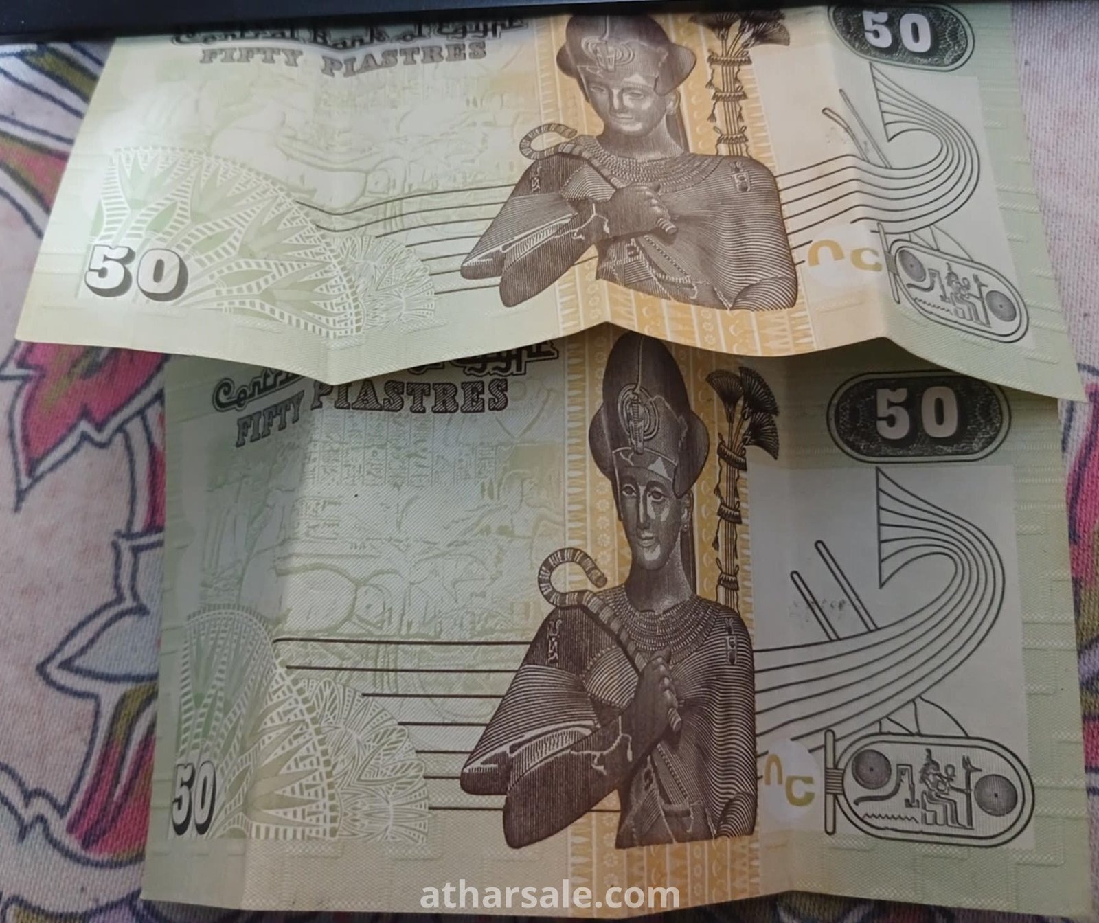 Two Egyptian banknotes, 50 Piastres denomination, excellent condition, 2017