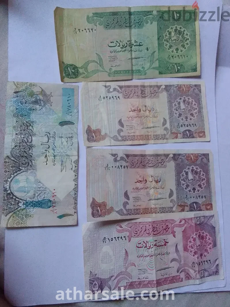 عملات متنوعة لدولة قطر . . قديمة وملغاة. . فئة واحد . . وخمسة . وعشرة ريالات