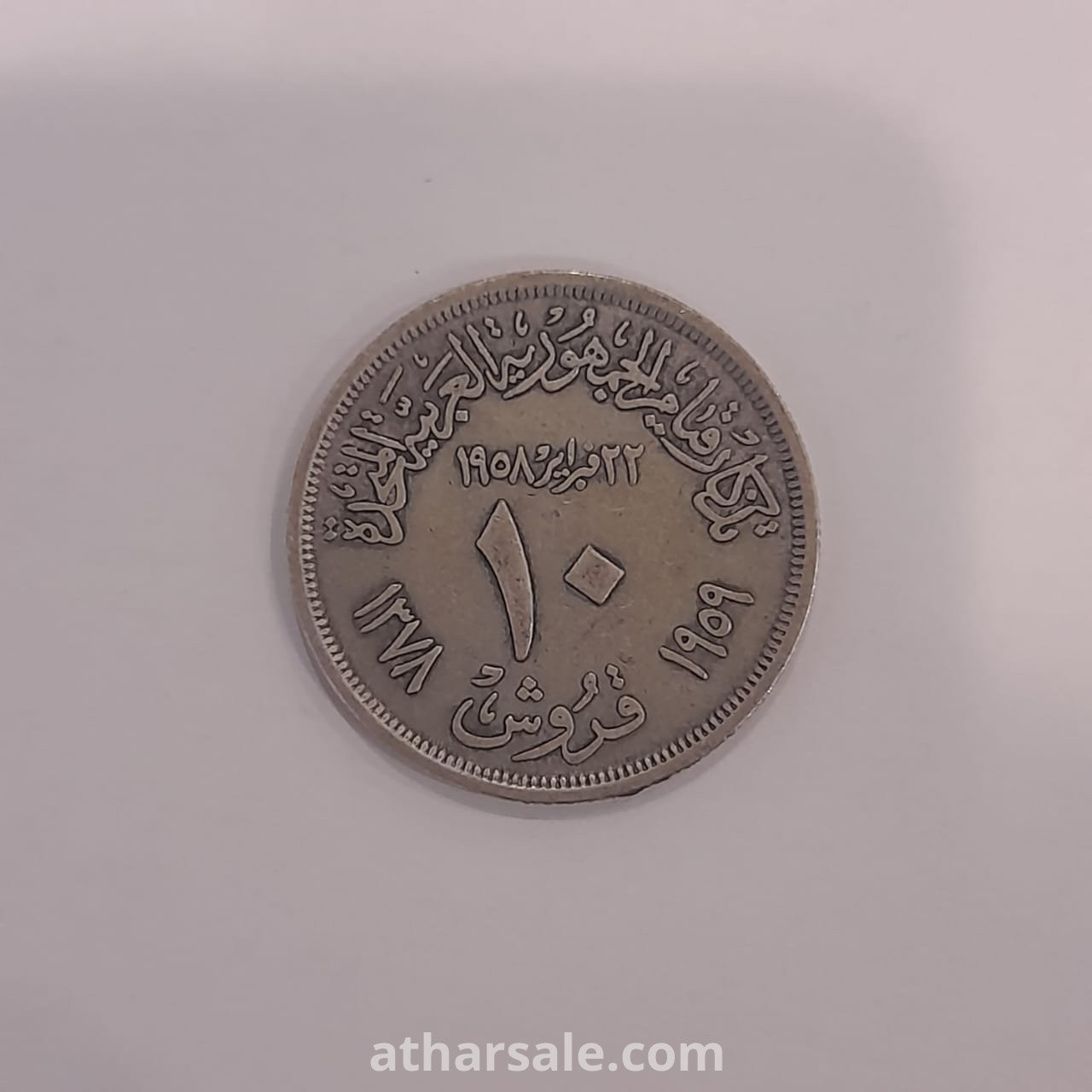 Rare coin with a limited mintage – 10 Piastres denomination – commemorative issue marking the establishment of the United Arab Republic (Egypt–Syria), dated 1959.