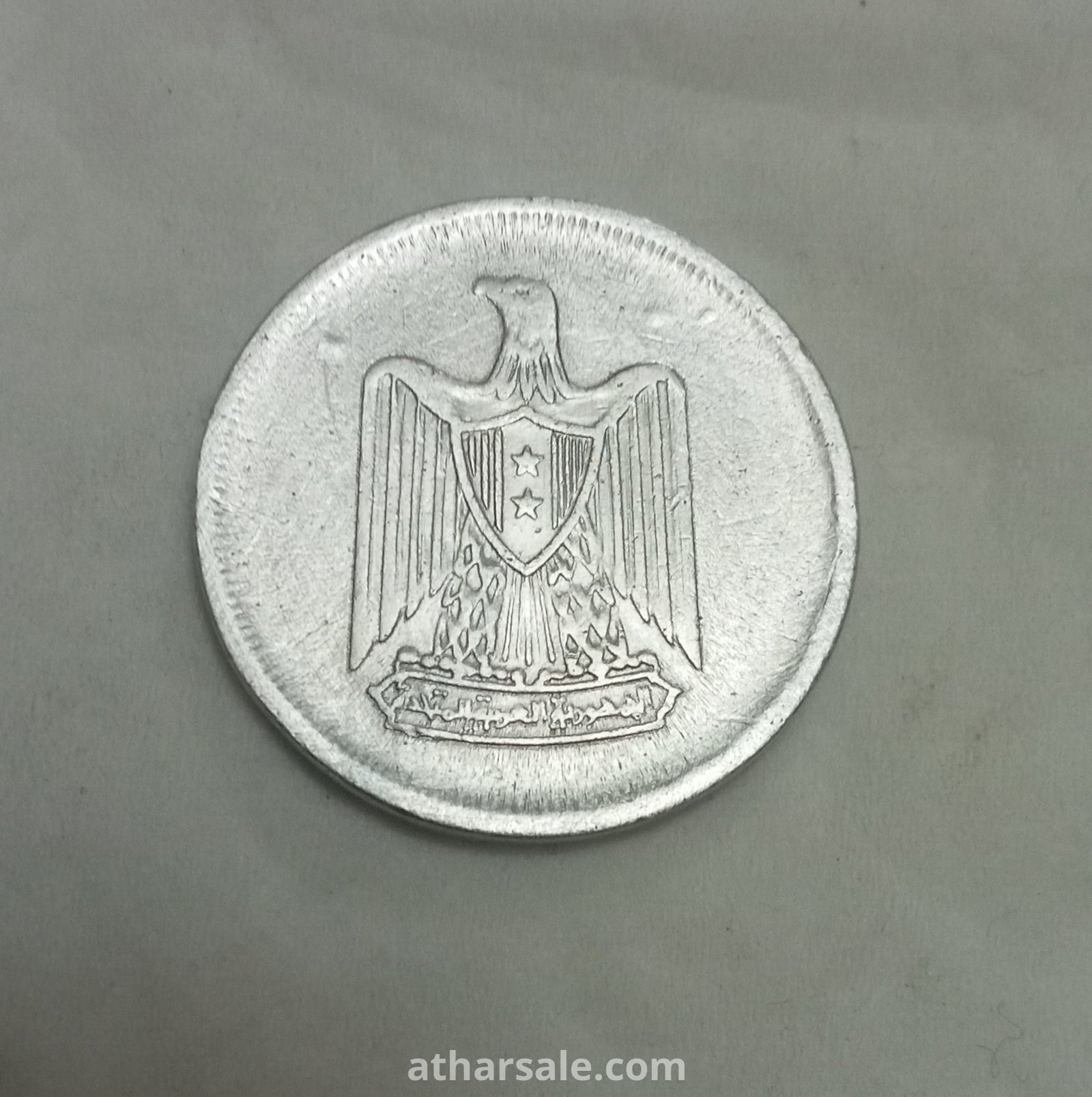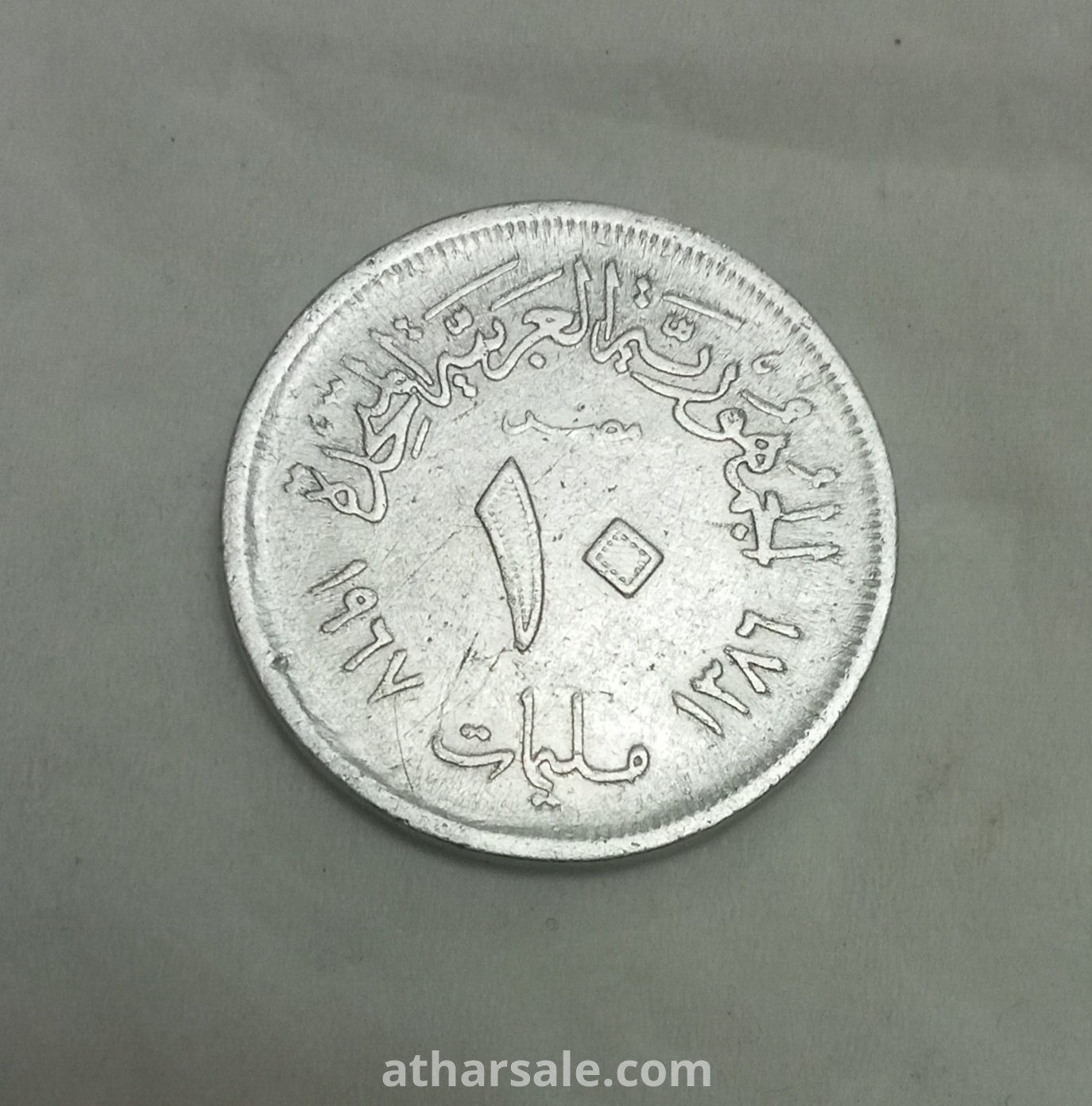 عملة مصرية قديمة تعود لفترة الجمهورية العربية المتحدة فئة 10 مليمات سنة 1967م 1386هـ تم إصدارها فى عهد الزعيم الراحل جمال عبد الناصر العملة مصنوعة من الألمونيوم وزنها 1,5 جرام قطرها 23,5 ملم سمكها 1,85 ملم نوع الحافة منقوش وصف الحافة جـ عـ مـ  وتعنى الجمهورية العربية المتحدة .