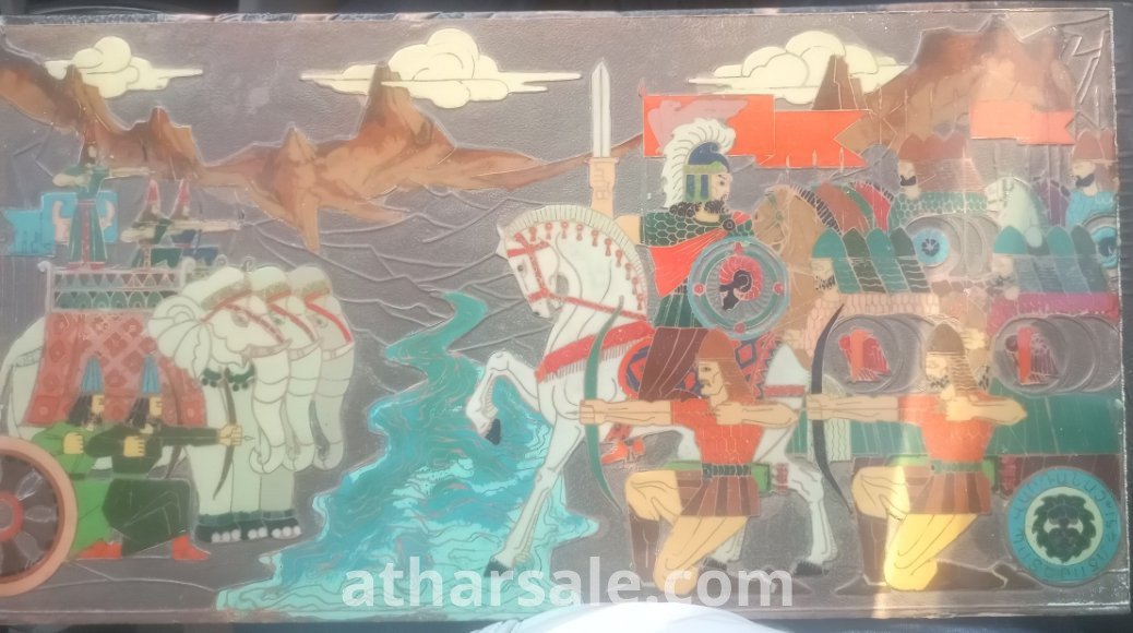 لوحة قديمه من التلبيس بورسلان وخطوطةالذهب تجسد الحروب الاسيويه قطعه مشغوله يدوياً بدقه وحرفيه قديمه