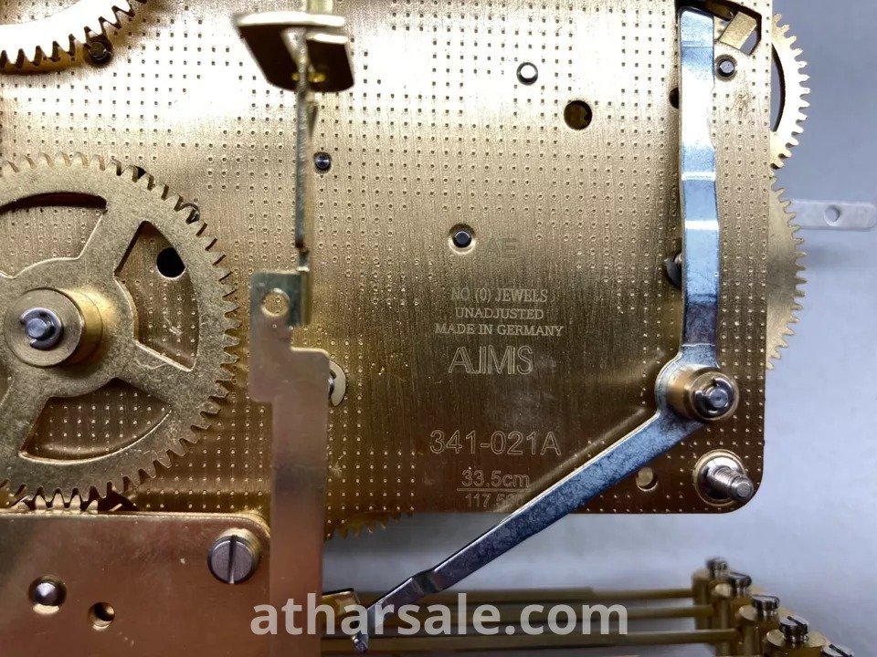 Three-piece original Japanese brass clock mechanism, fully functional, colored