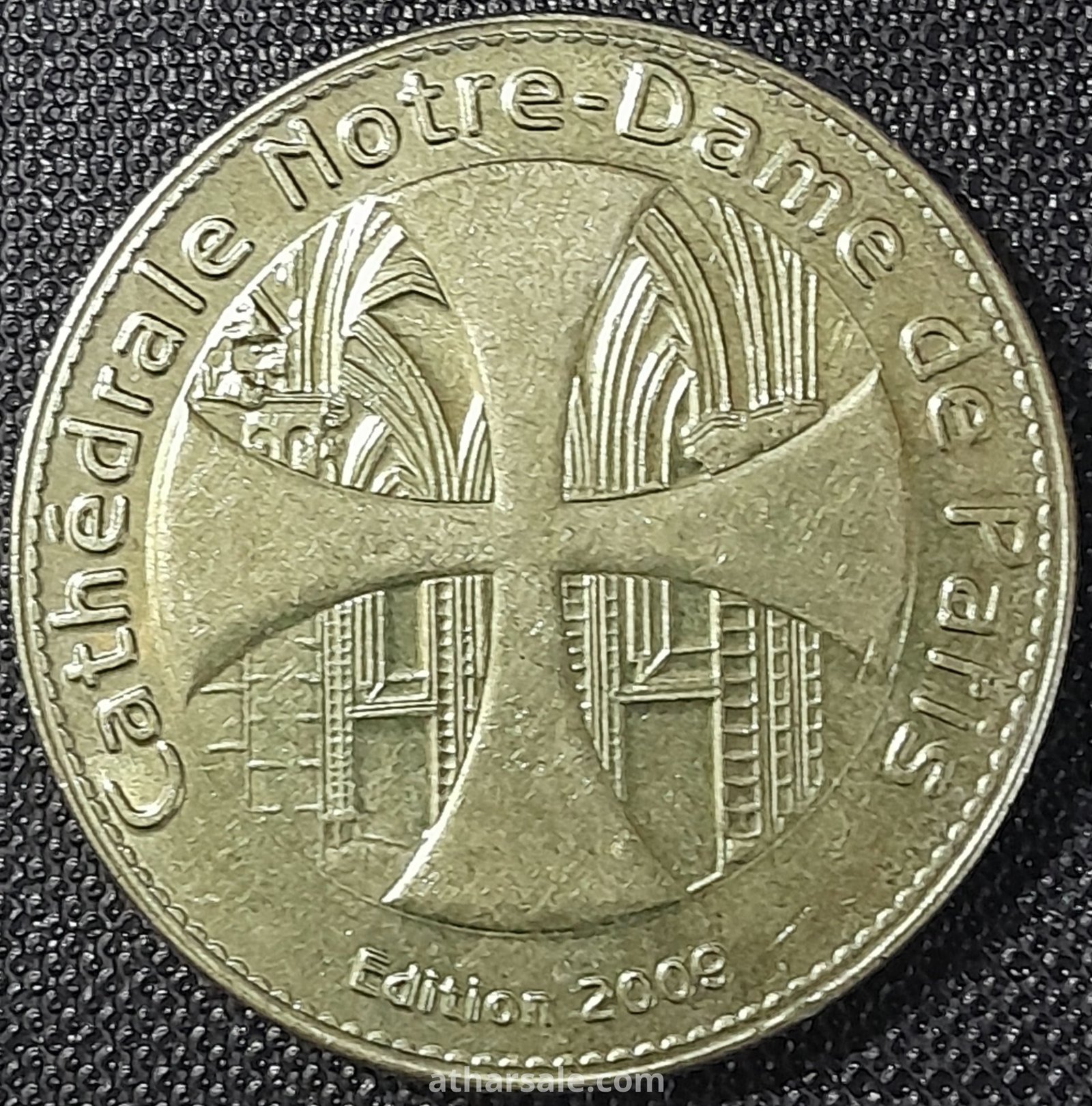 ميدالية معدنية تذكارية فرنسية كاتدرائية نوتردام باريس 2009 تصميم رائع ذو لون ذهبي جميل وحالة ممتازة